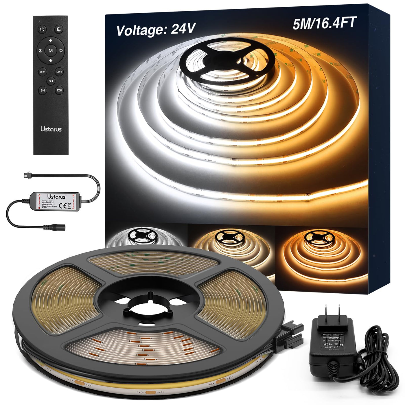 Ustarus 16.4Ft Cob Led Strip Light, Dimmable 2700K-6500K, Rf Remote,