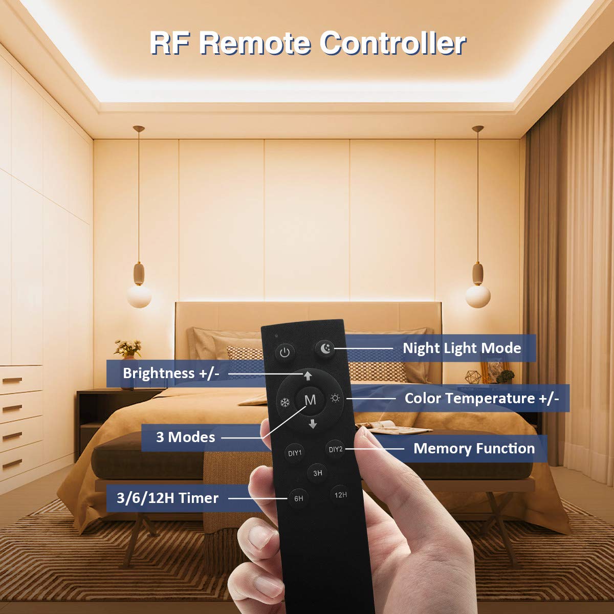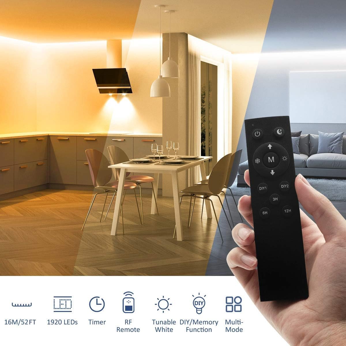 Ustarus Led Strip Lights White 52.5Ft 24V Dimmable 3000K-6000K Led Tape Rope Light With Remote Flexible 2835 Led Ribbon For Kitc