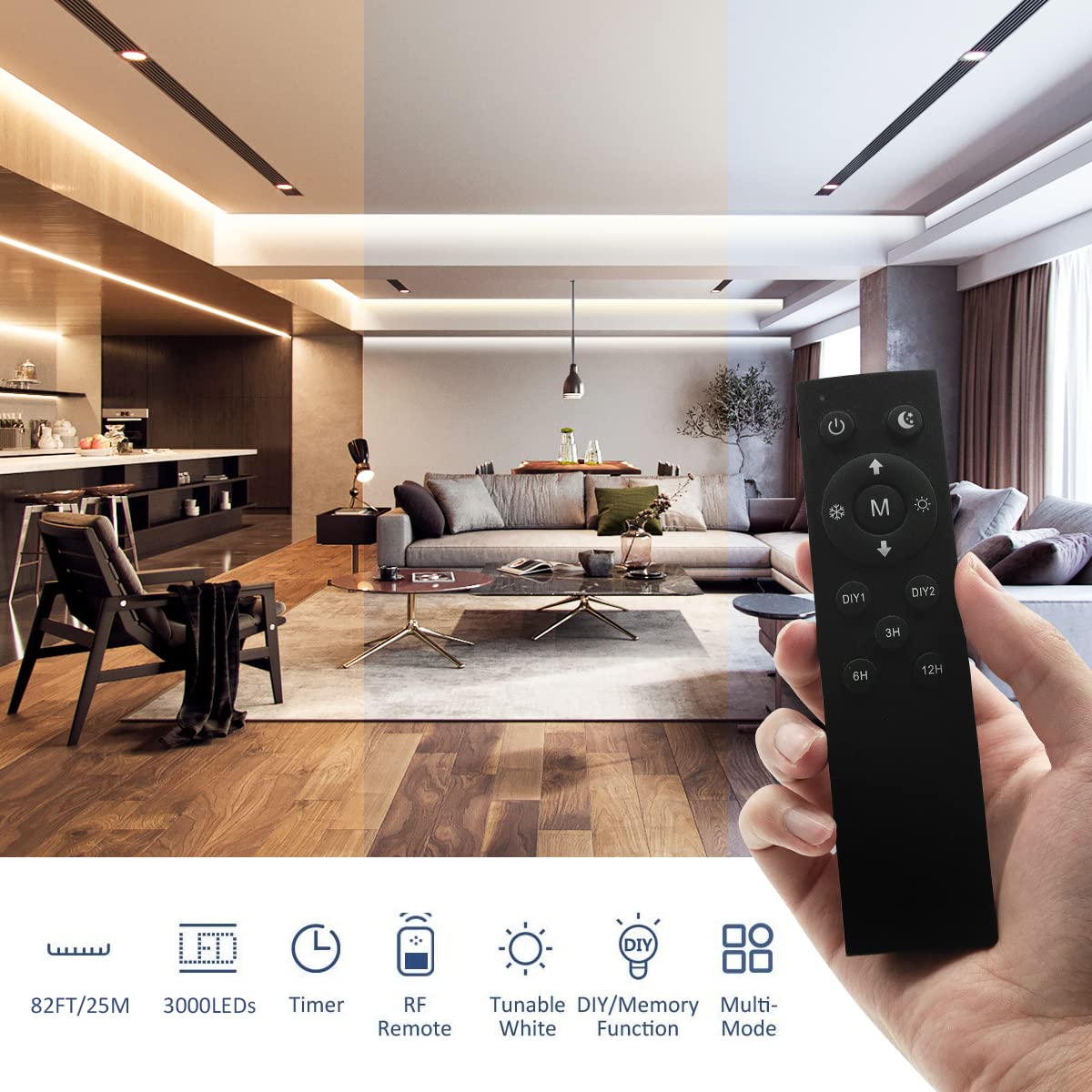 Ustarus White Led Strip Lights 82Ft 24V Dimmable 3000K-6000K Led Tape Rope Light With Remote Flexible 2835 Led Ribbon For Kitche