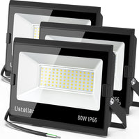 Ustellar 3 Pack 80W Led Flood Lights, 24000Lm, Ip66 Waterproof, Daylight White Outdoor Security Lighting