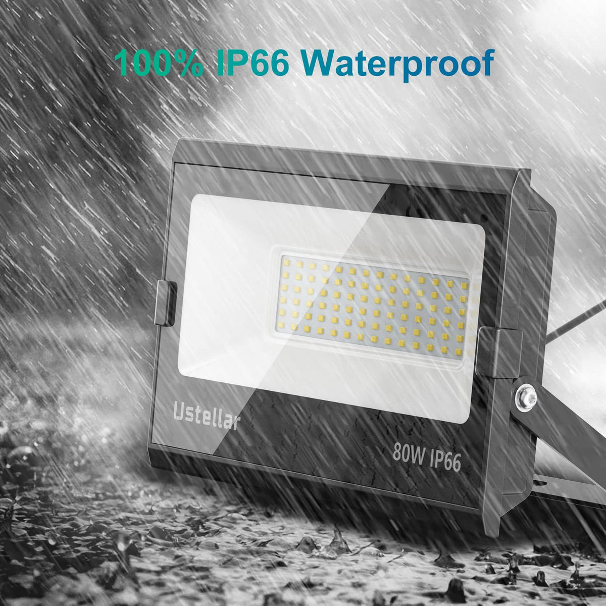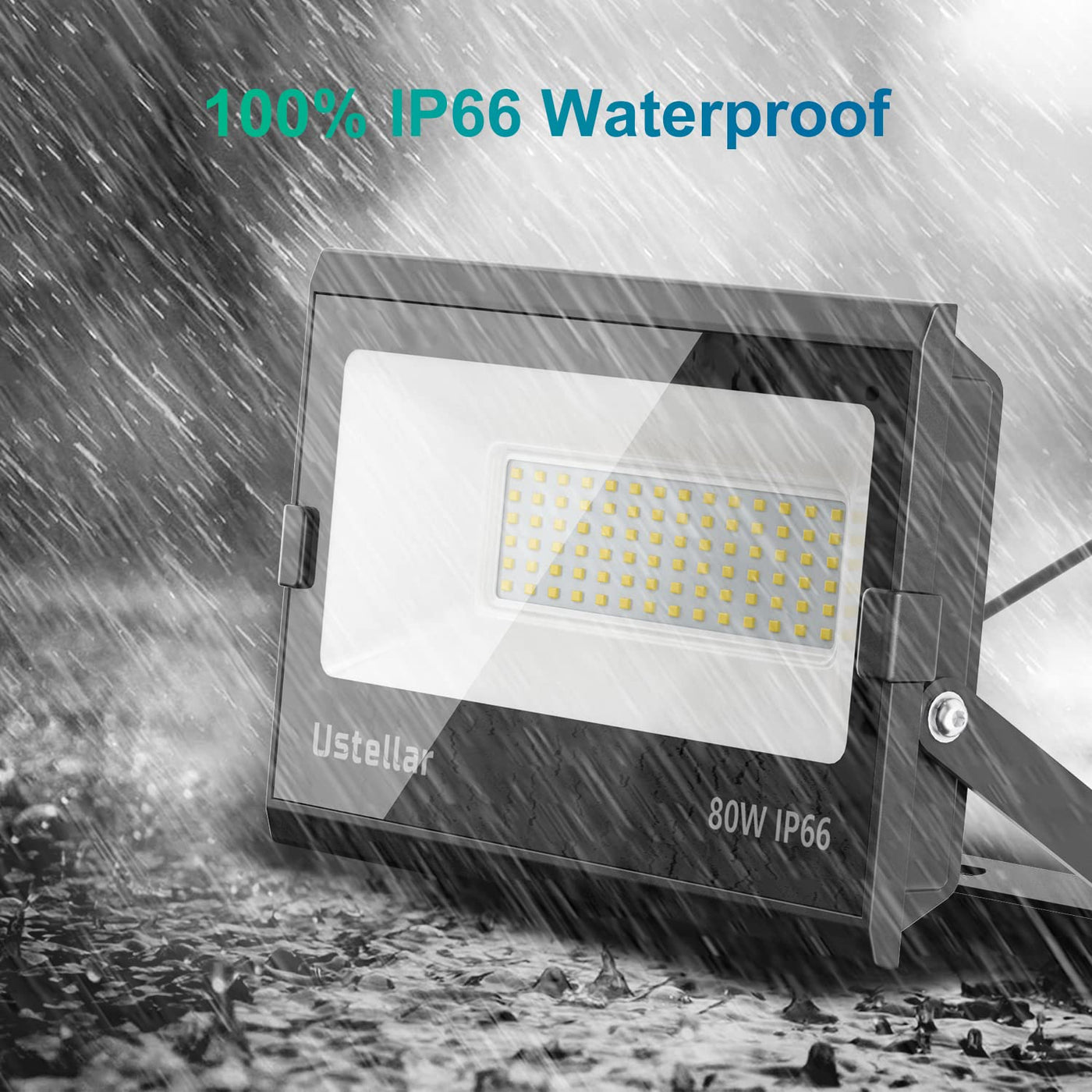 Q: Are these flood lights suitable for outdoor use?A: Yes, the Ustellar LED Flood Lights have an IP66 waterproof rating, making them ideal for outdoor use in various weather conditions.