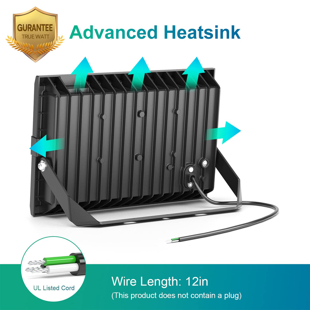 - **True Wattage Specifications**: With a true wattage of 80W, you can trust that the performance data is accurate, eliminating any concerns about misleading specifications. Please note that these floodlights are hard-wired and do not come with a plug.