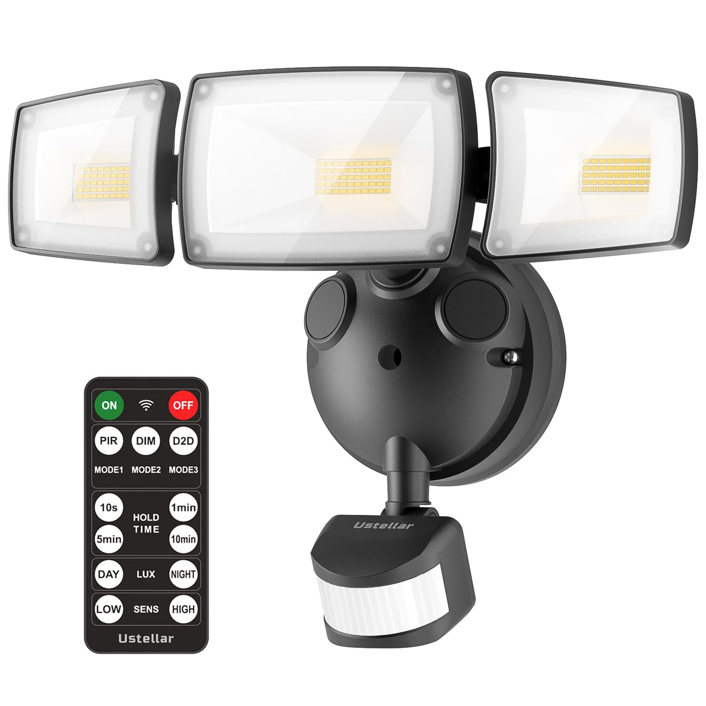 Ustellar 55W Led Security Lights Motion Sensor Light Outdoor With Remote Control, Dusk To Dawn Led Flood Lights 5500Lm 5000K, Ip
