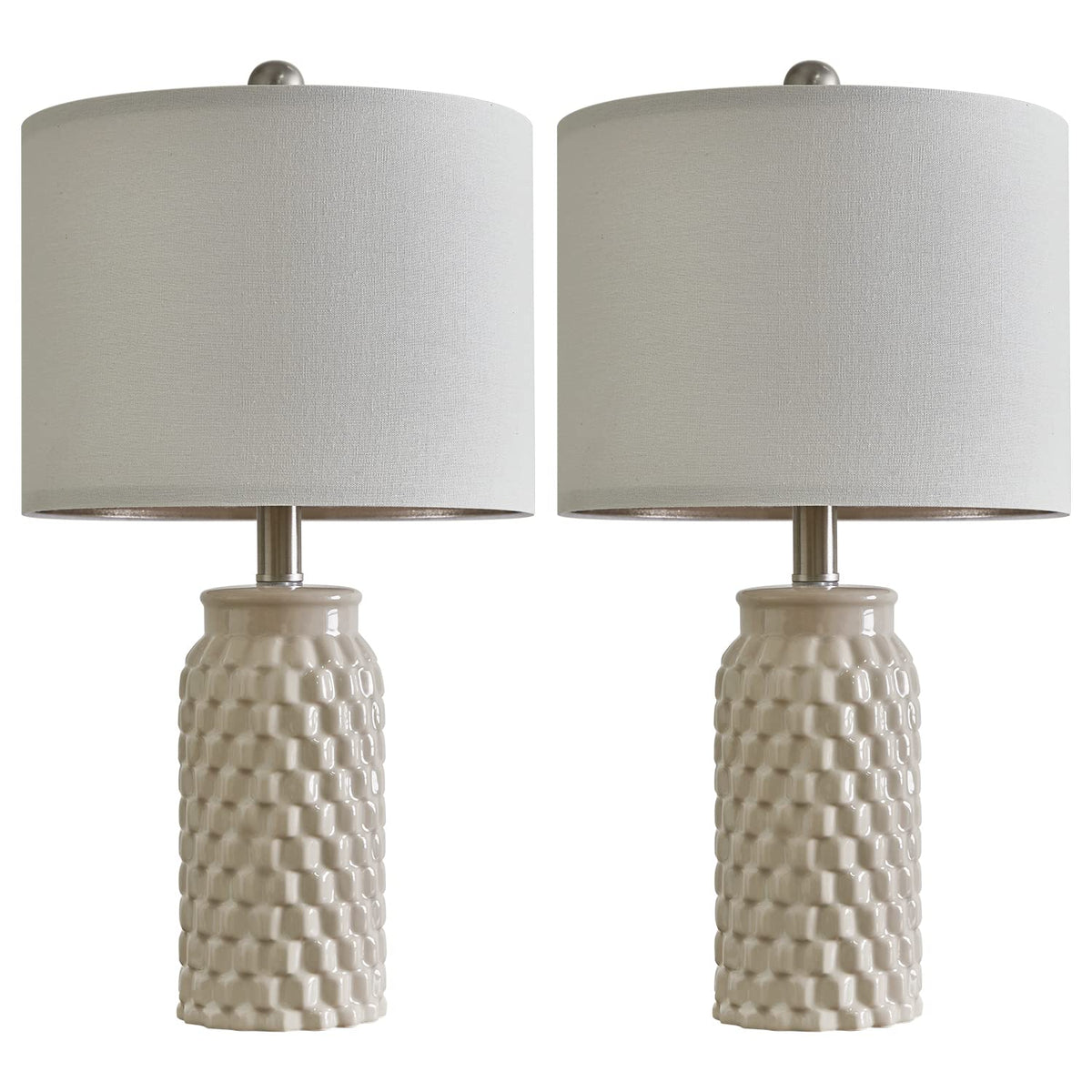 Usumkky 20.5" Modern Ceramic Bedside Lamp Set Of 2 For Bedroom Decor Farmhouse Table Lamp For Living Room Office Dorm
