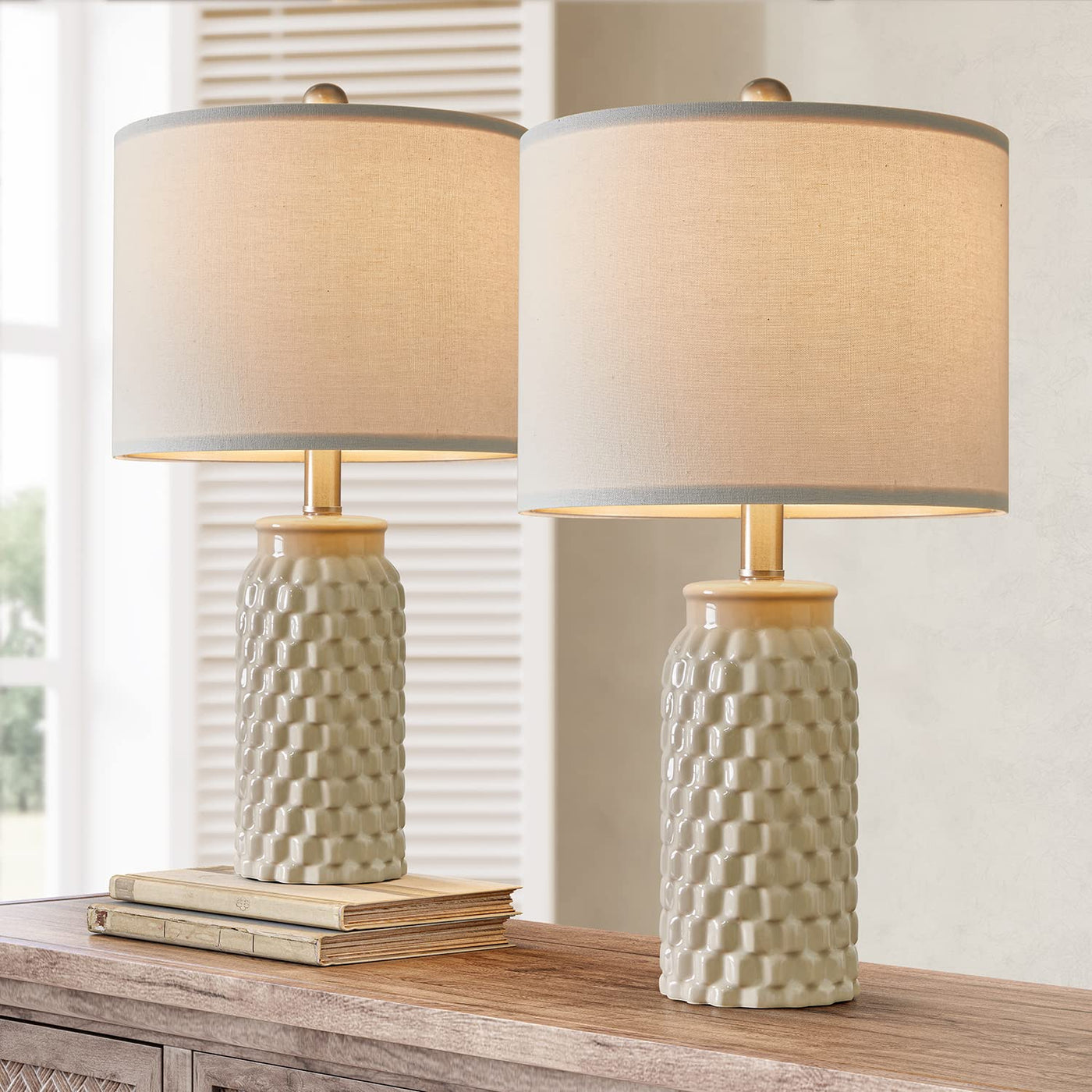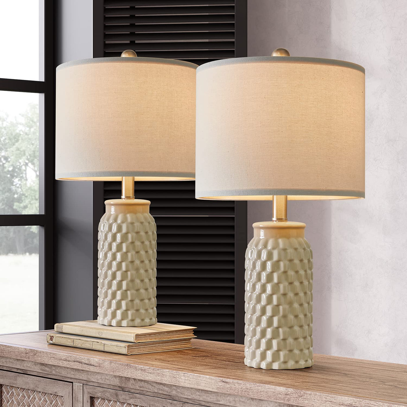 USumkky 20.5 inches Modern Ceramic Bedside Lamp Set of 2 for Bedroom Decor Farmhouse Table Lamp for Living Room Office Dorm