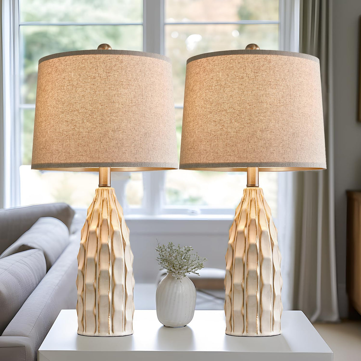 USumkky 23.75 inch Modern Ceramic Lamps Set of 2 for Living Room Study Room Office Dorm Farmhouse Nightstand Lamp End Table Lamps