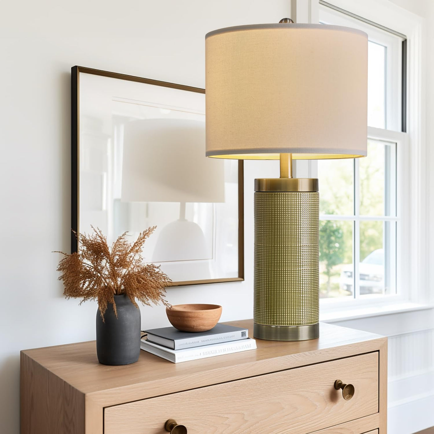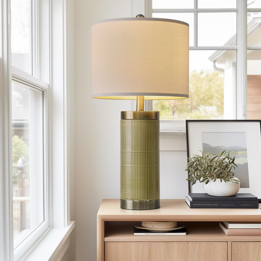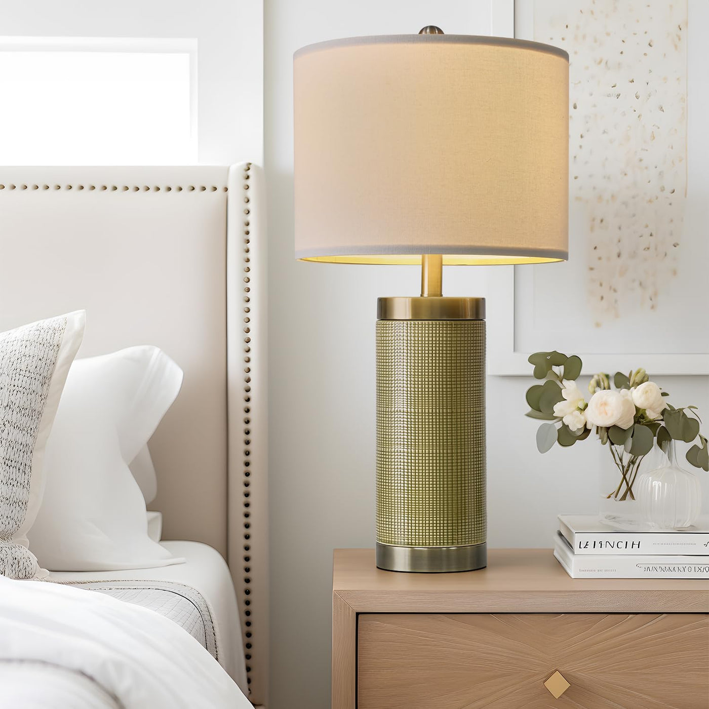 Usumkky 24.5" Modern Ceramic Light-Green Single Bedside Lamp For Bedroom Decor Farmhouse Table Lamp For Living Room Office Dorm