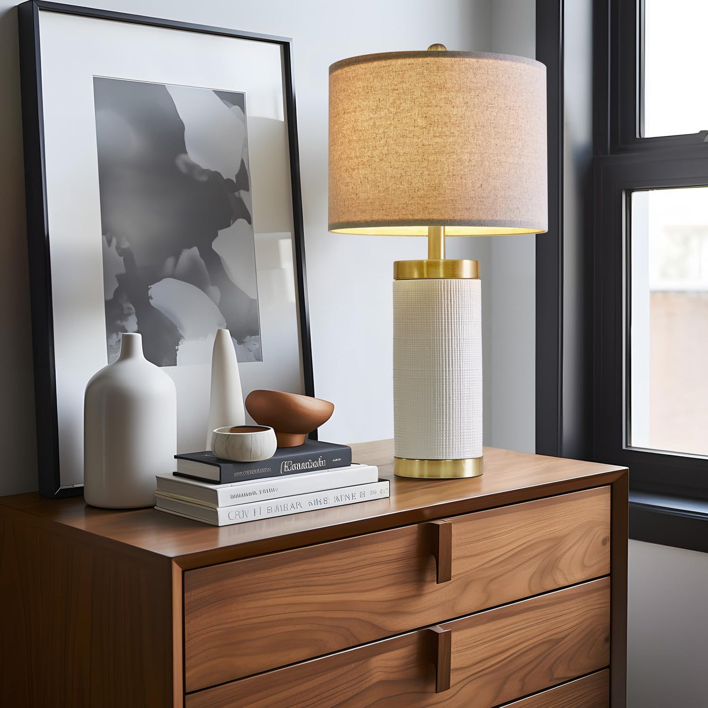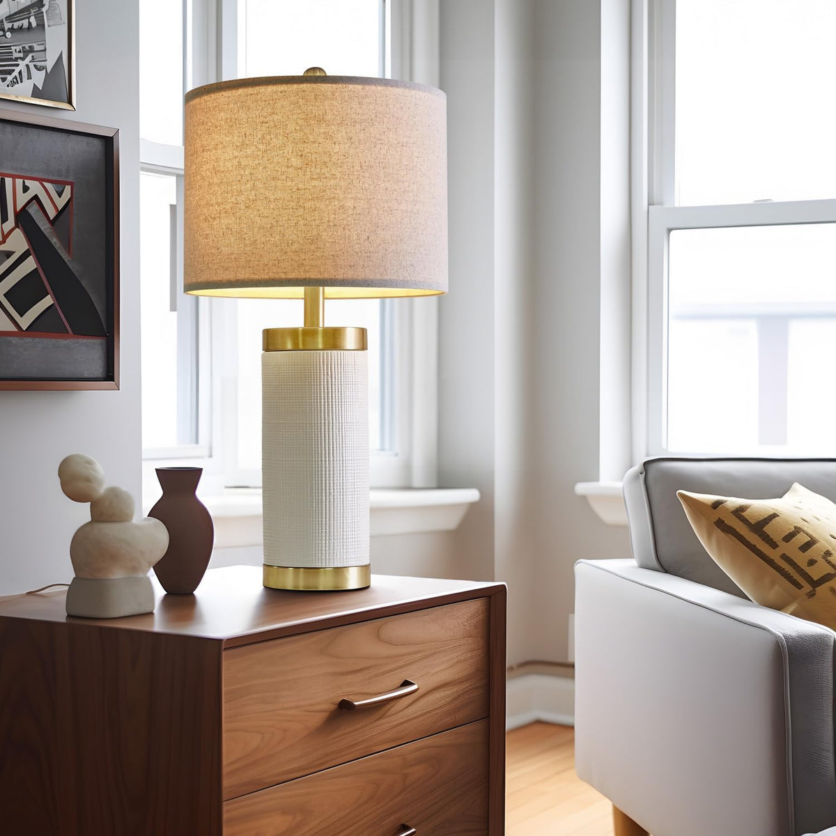 Usumkky 24.5" Modern Ceramic White Single Bedside Lamp For Bedroom Decor Farmhouse Table Lamp For Living Room Office Dorm