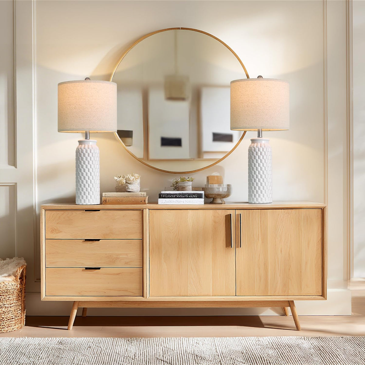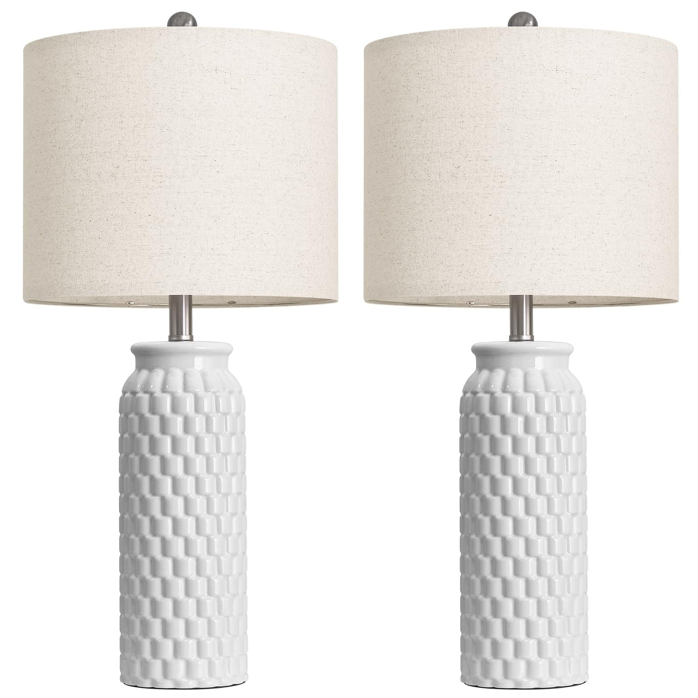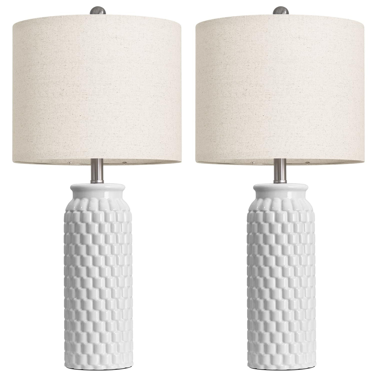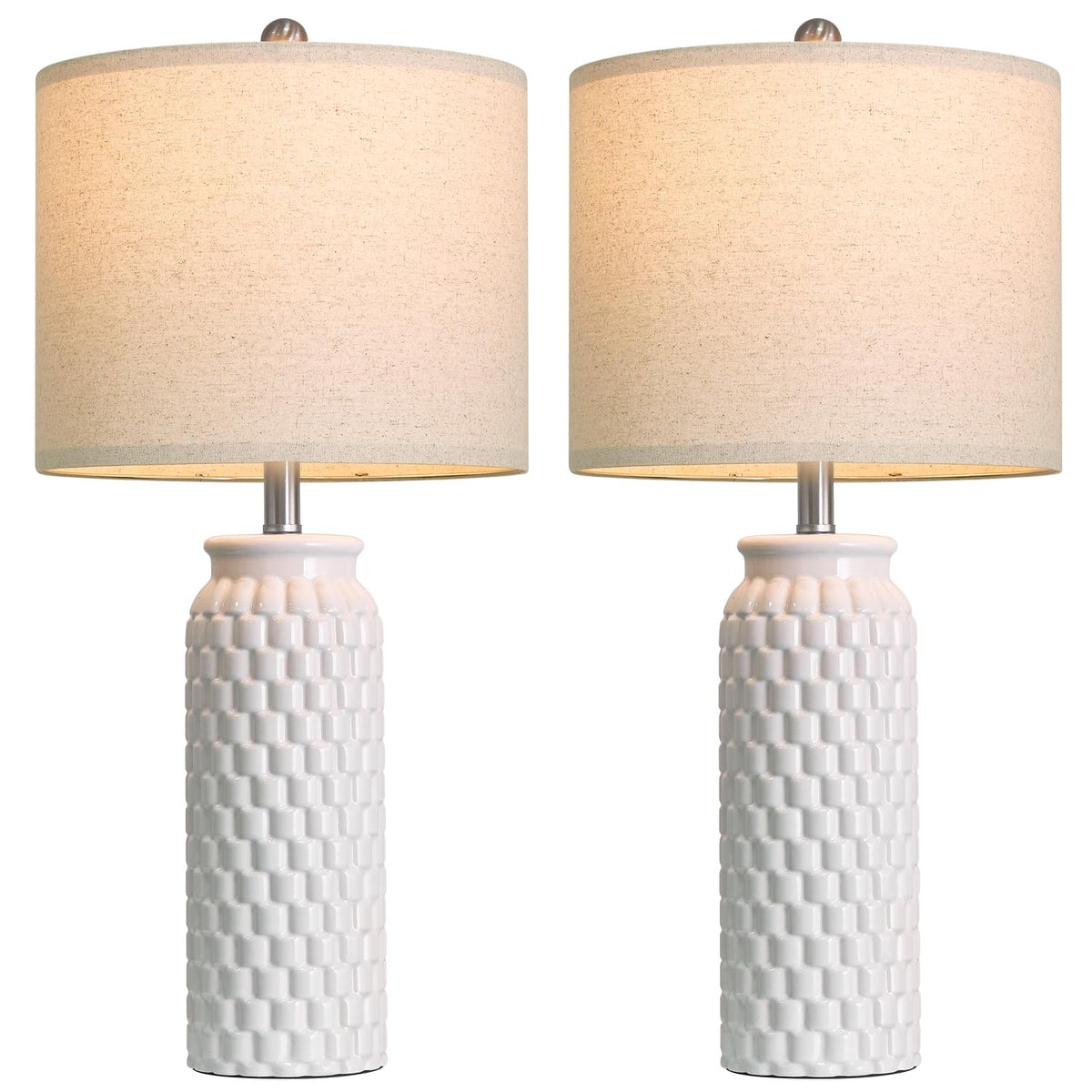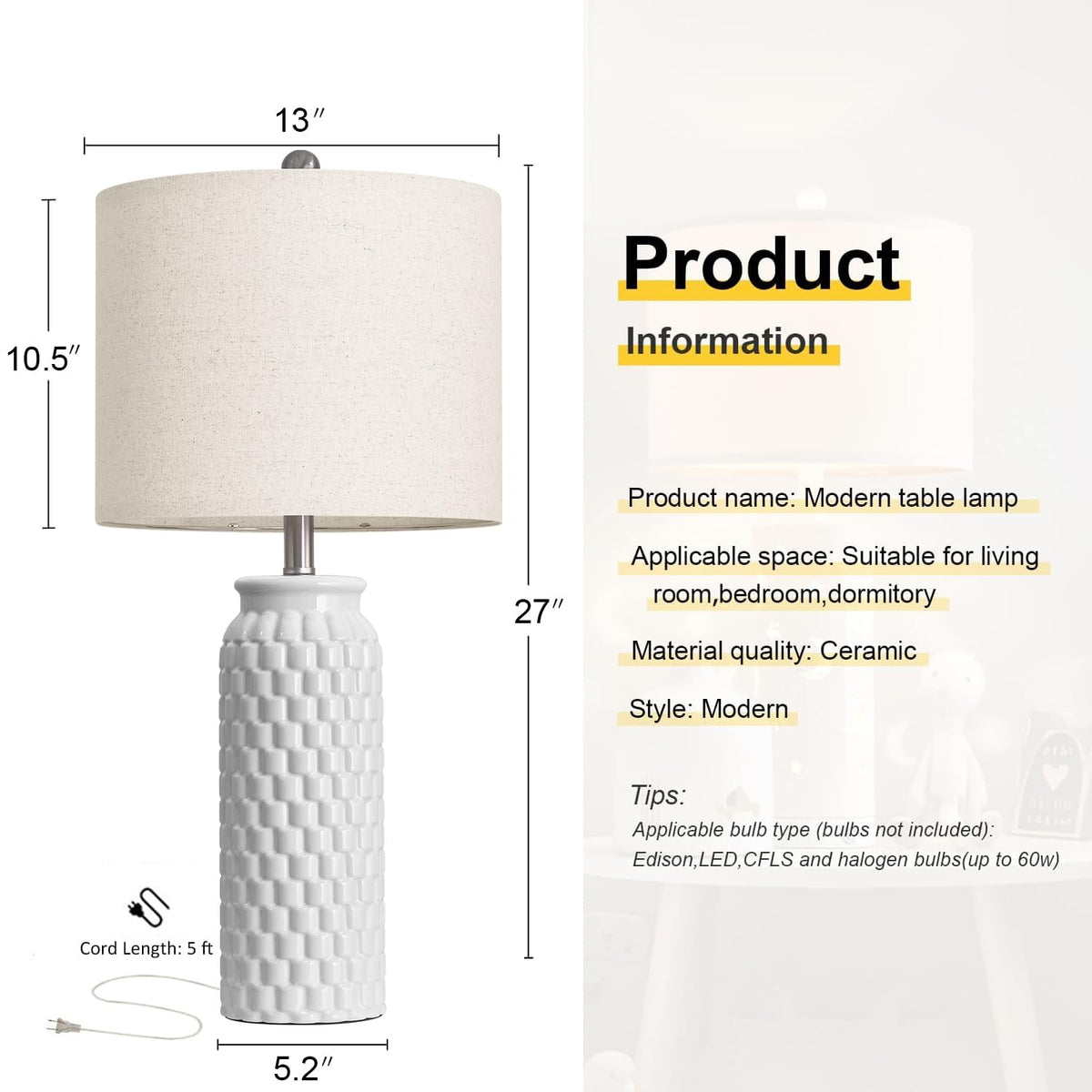 Usumkky 27 White Modern Ceramic Living Room Lamps Bedside Lamp Set Of 2 For Bedroom Decor Farmhouse Table Lamp For Living Room Office Dorm