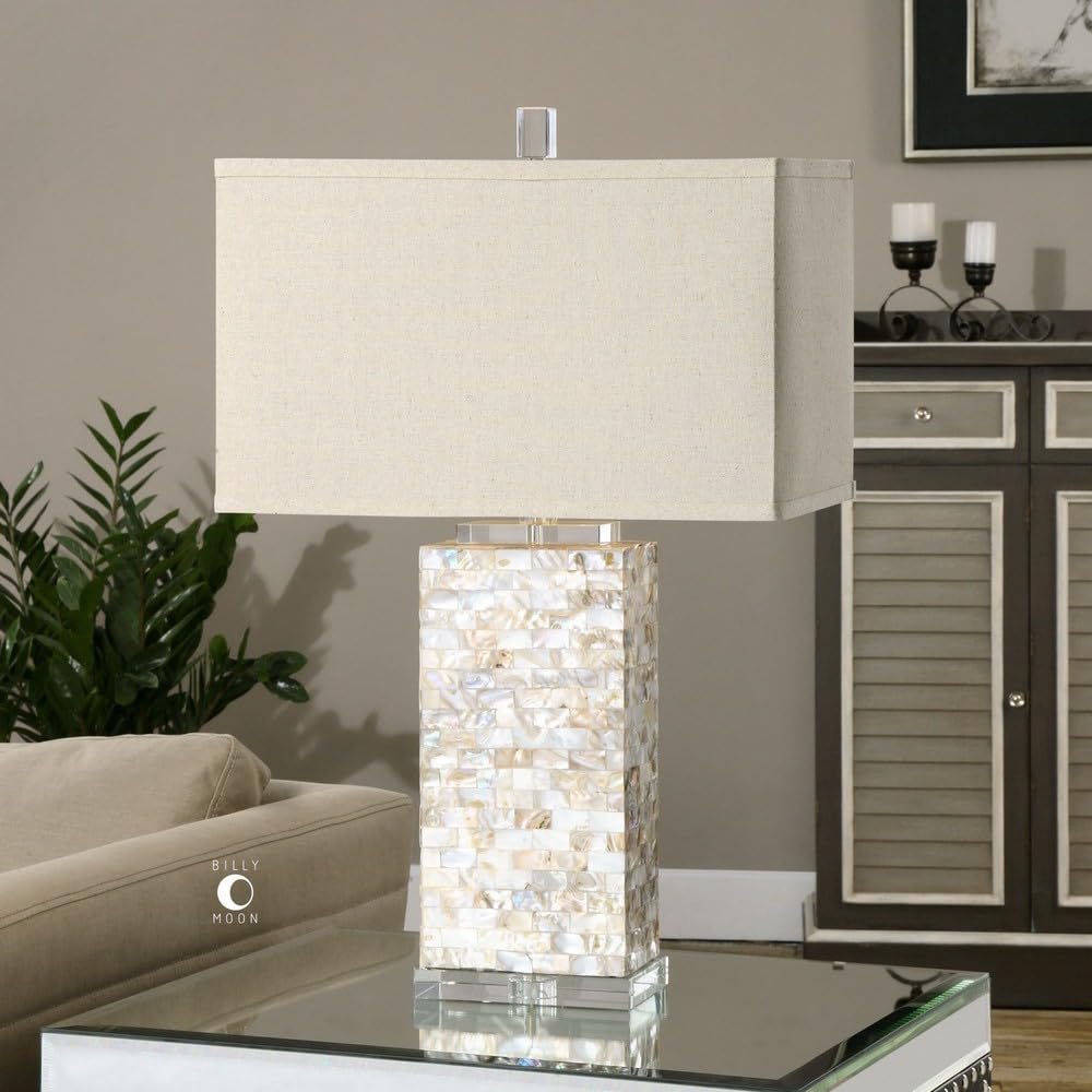 Elevate your home decor with Uttermost's stunning lamp, expertly crafted to blend premium quality materials with a distinct high-style design. This exquisite lamp features layered capiz shell tiles that are beautifully accented with crystal details, creating a striking visual impact in any room.
