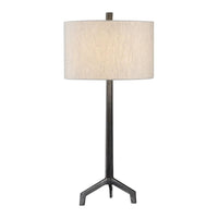 Q: What style of decor does the Uttermost Ivor Table Lamp complement?A: The industrial style and raw steel finish of the Uttermost Ivor Table Lamp make it a perfect fit for contemporary, modern, or rustic decor themes.