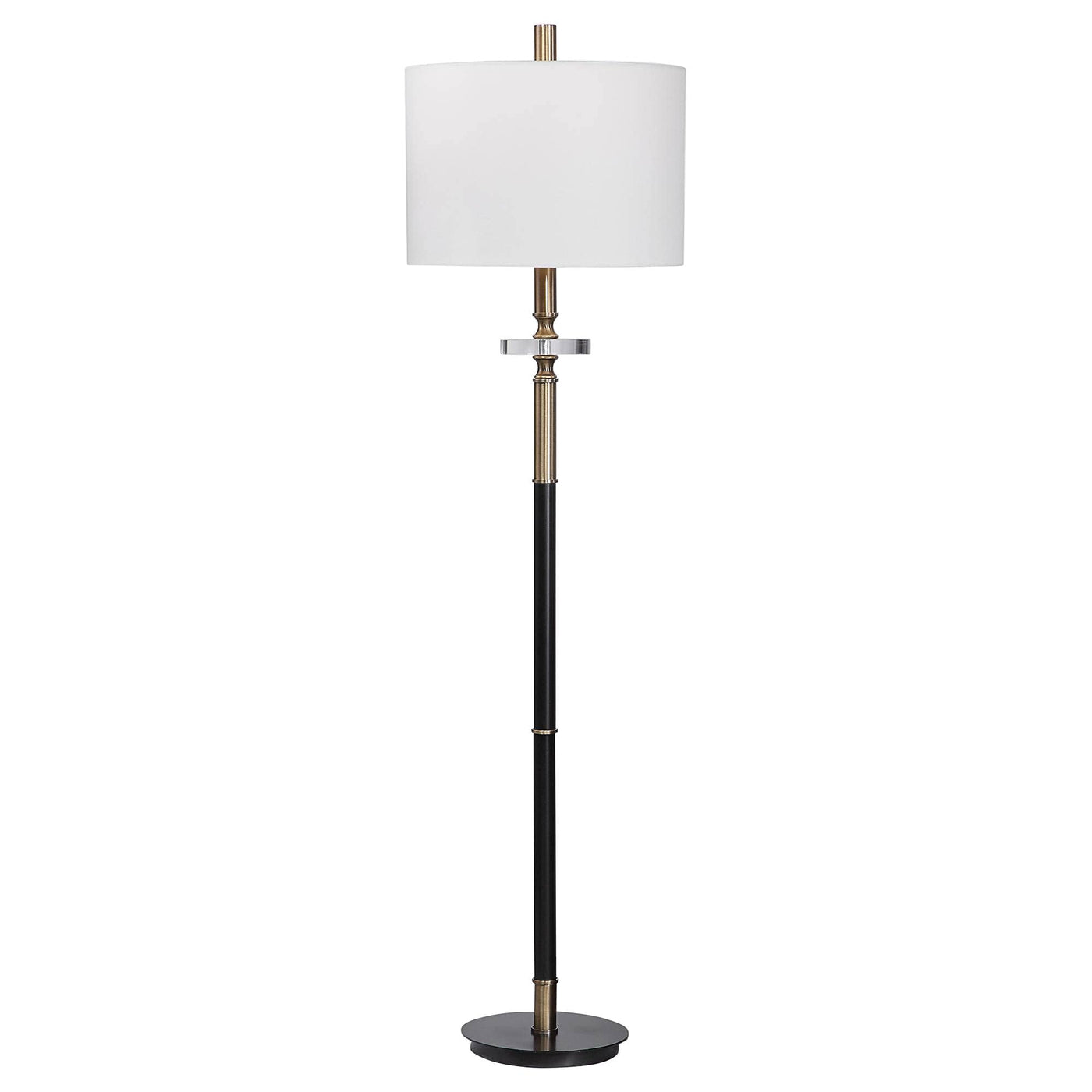 Q: What materials are used in the construction of the Uttermost Maud Floor Lamp?A: The Uttermost Maud Floor Lamp is constructed from high-quality steel with an aged black and antique brass finish, complemented by crystal accents, ensuring durability and an elegant look.