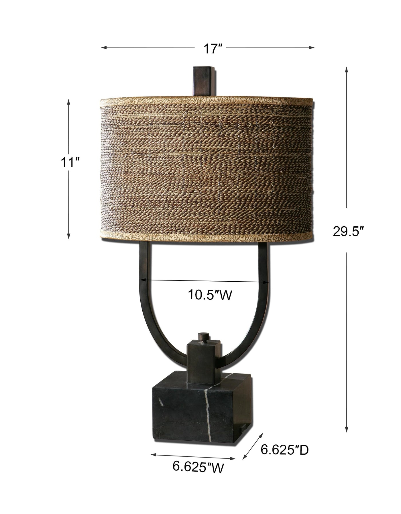 Uttermost Stabina Table Lamp, Rustic Bronze Metal, Marble & Cane, 29.5" L X 10" W