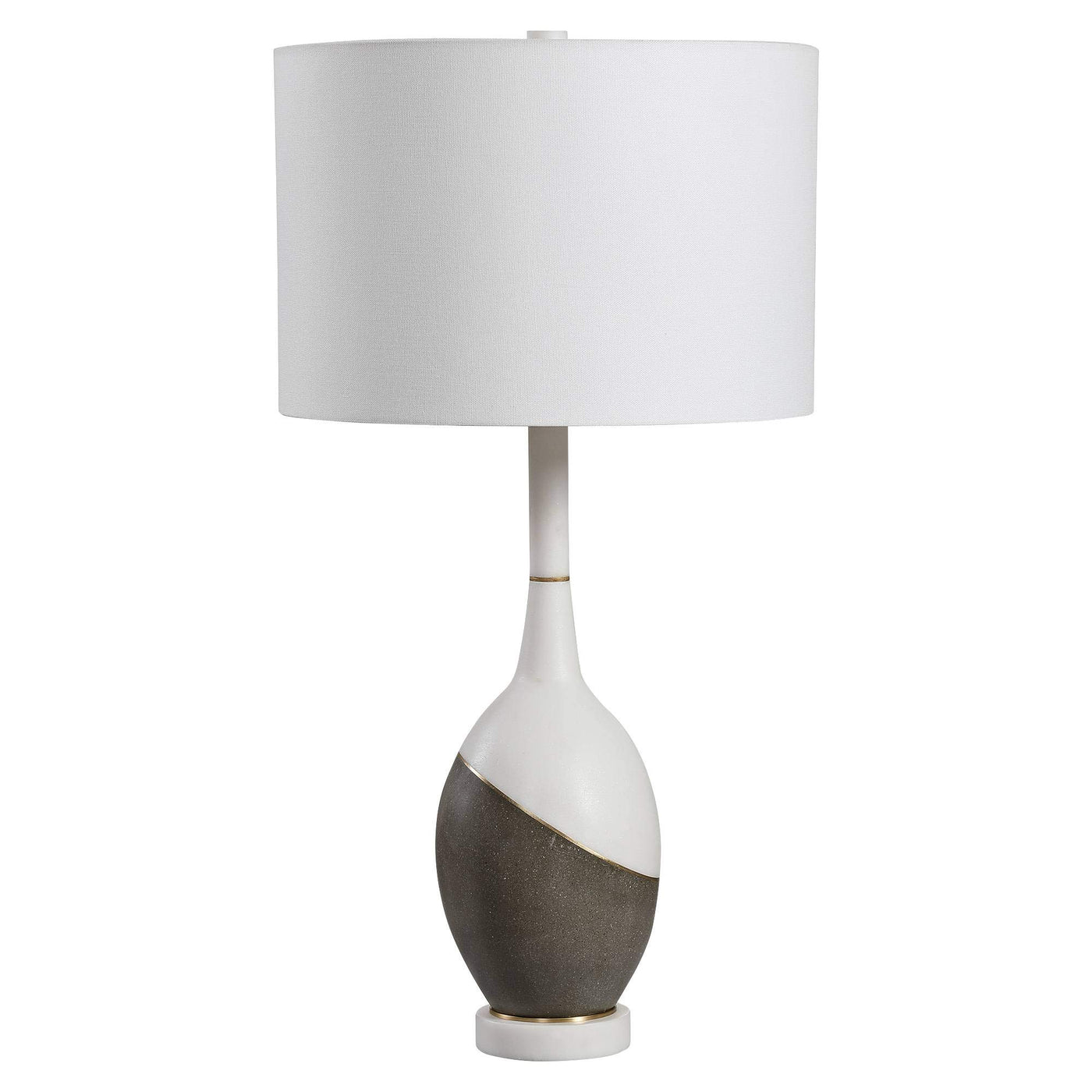 Collection: Tanali, Material: Iron, Finish Color: Charcoal/Polished White Marble/Brushed Gold, Width: 15", Height: 28.5", Depth: 15", Number Of Bulbs: 1, Wattage: 150 Watts, Dimmable: No, Moisture Rating: Dry Rated, Desc: Simple Yet Sophisticated, This Table Lamp Features A Combination Of Honed Charcoal Concrete And A Polished White Marble Look, Accented By Brushed Gold Plated Accents. The Lamp Is Complimented By A Crisp White Hardback Drum Shade. Renee Wightman / Shade Included: Yes. ,