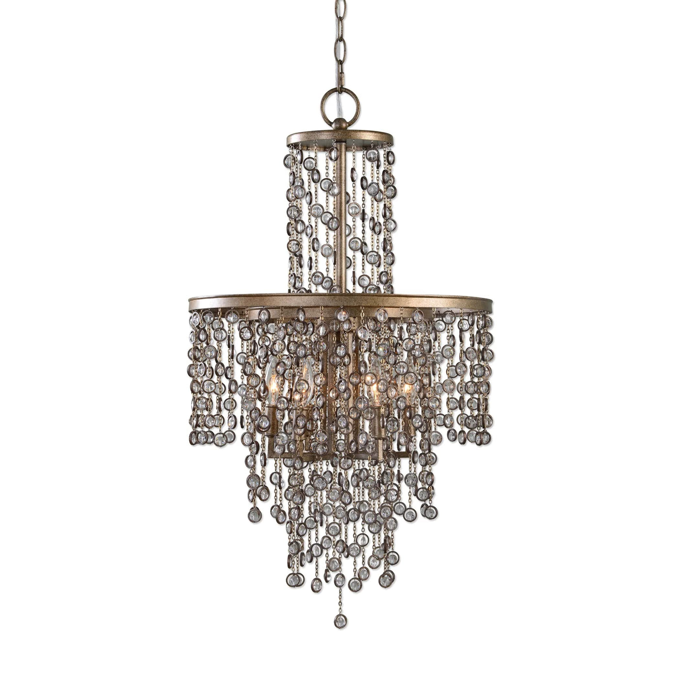 Q: What is the size of the Uttermost Valka Chandelier?A: The Uttermost Valka Chandelier measures 19.25 inches in diameter and stands 33.5 inches high, making it a perfect fit for various spaces.