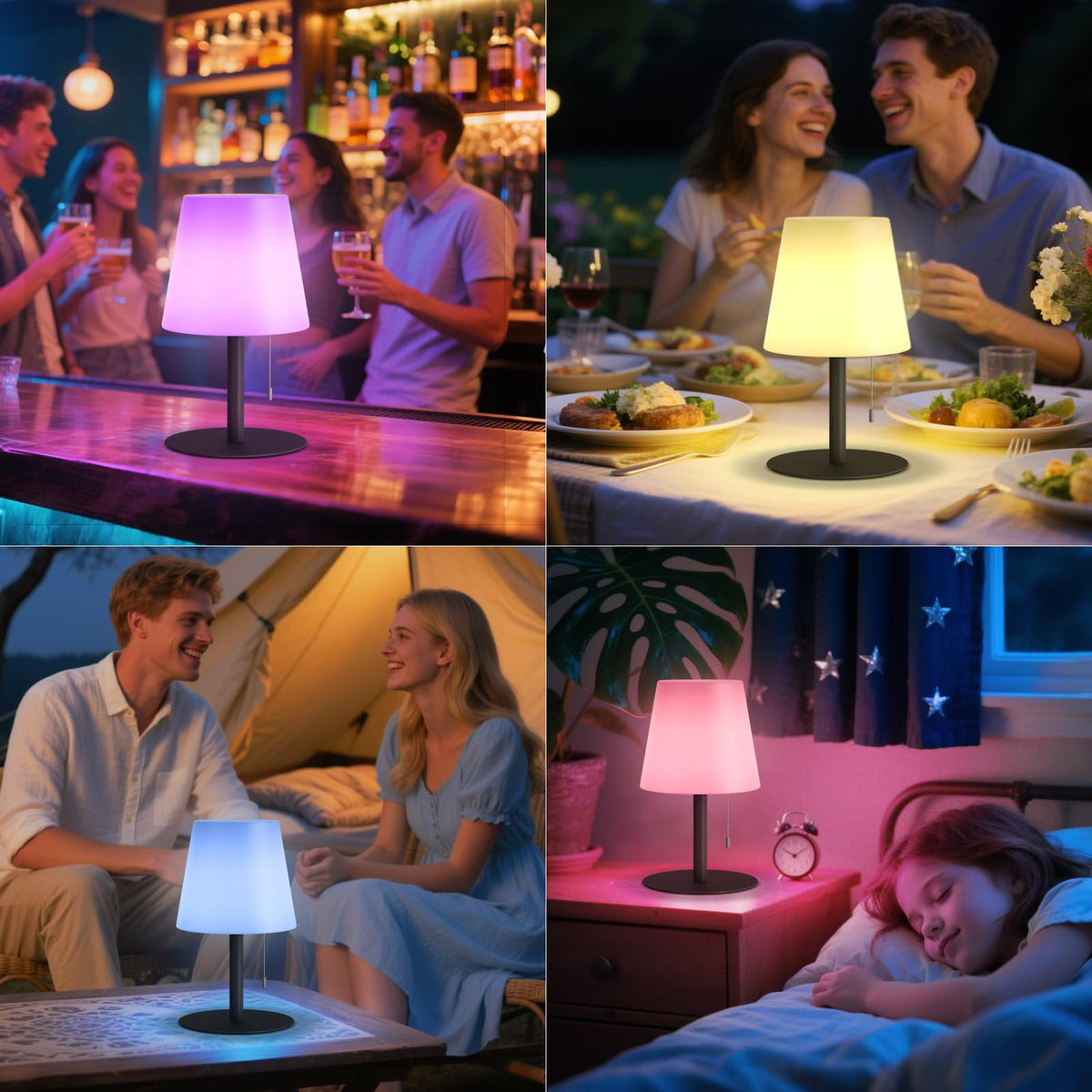 Uuffoo 2 Pack Shower Lamp Rechargeable Outdoor Table Lamp Cordless Warm White & Rgb Night Light For Patio Restaurant Camping Bathroom Gift For Women Mom Grandma H9.8In (Black)