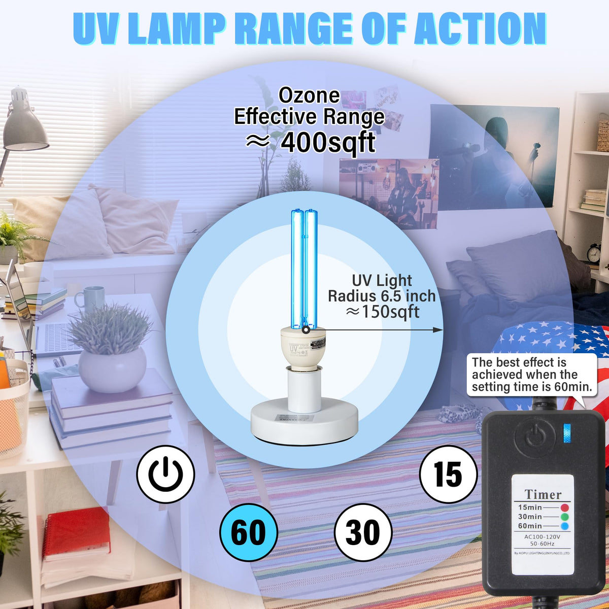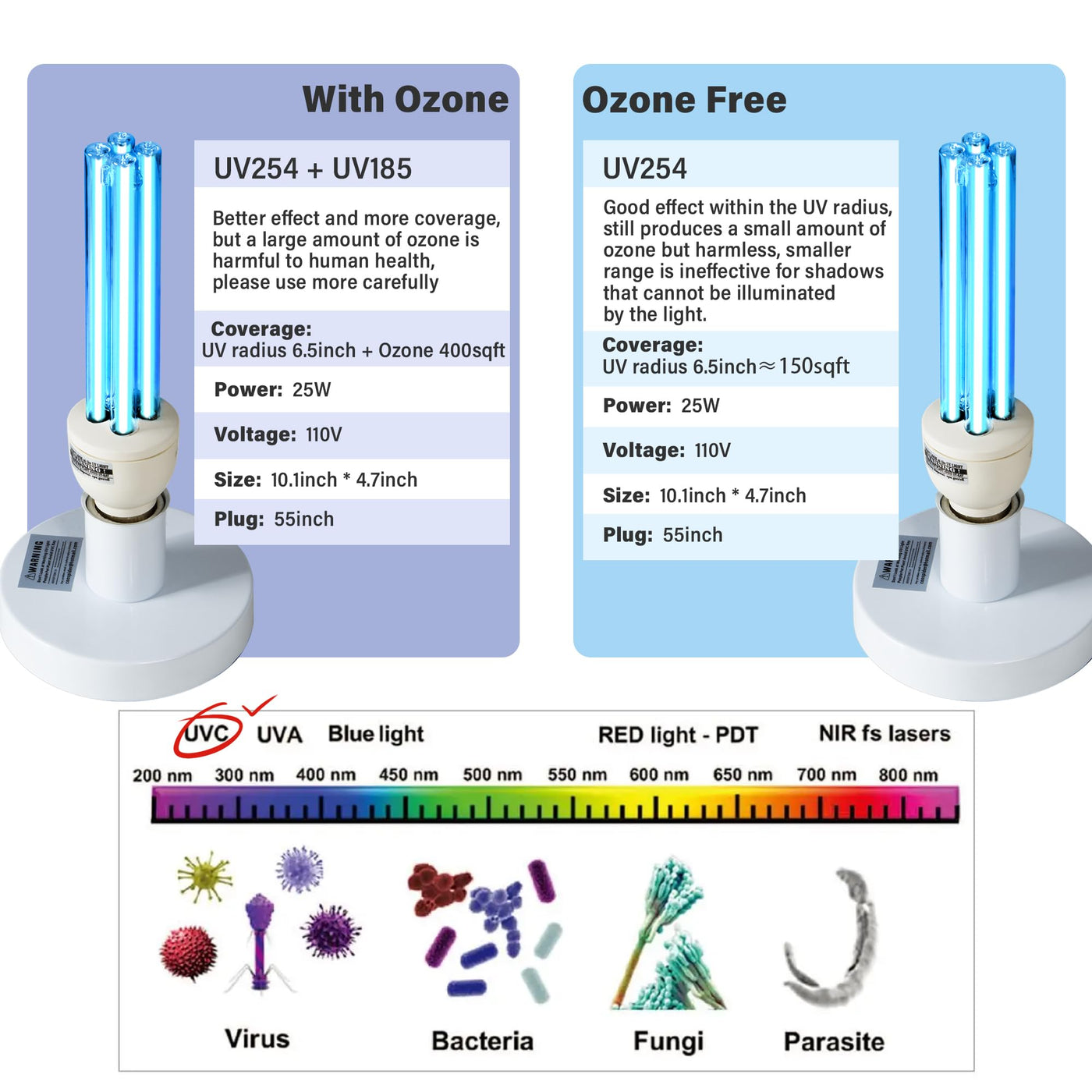 Powerful 25W UV Light Portable Ozone Free Ultraviolet Light with 3-Gear Timer, 110V Cleaning Lamp for Bedroom, Baby Room, Kitchen and Office