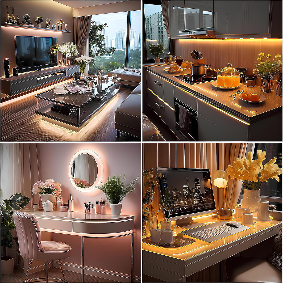 Q: How long is each LED strip in the pack?A: Each LED strip in the UVTaoYuan pack measures 3.28 feet (1 meter), making it suitable for various indoor lighting applications and DIY decor projects.