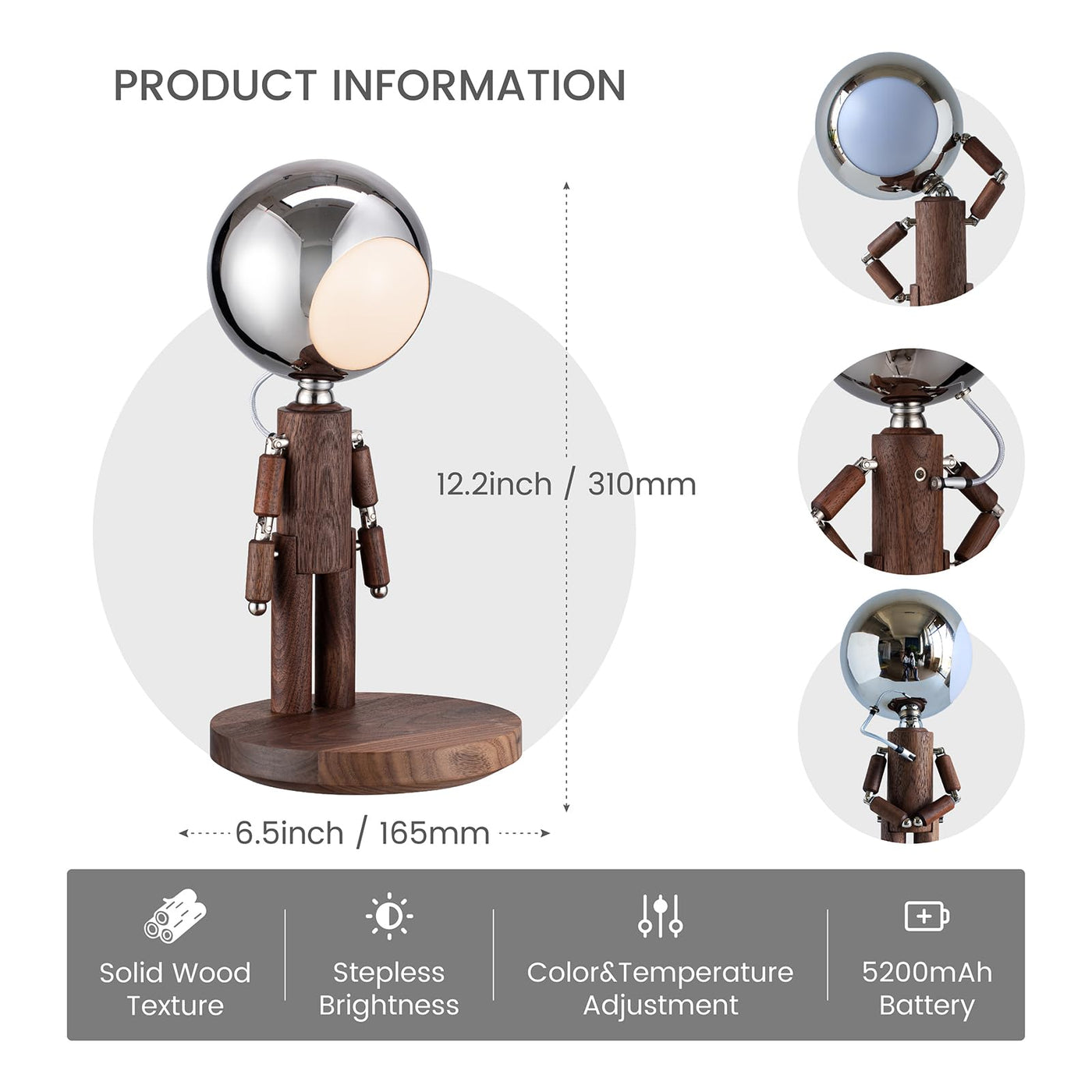 Pause Moon Lamp - Rechargeable Cordless Table Lamp Inspired By A Standing Figure With A Moon-Like Head The Pause Moon Lamp Blends Art And Function. Its Magnetic Poseable Design Feels Alive-Like Its Thinking Waiting Or Dreaming-Adding Personality And Charm To Any Space. Made From enhanced Solid Black Walnut This Cordless Night Lamp Provides Up To 7 Hours On High Or 80 Hours On Low With Usb-C Charging. Tap To Switch Between Three Color Temperatures Or Adjust Brightness From 2%-100% Perfect As A Bedside Lamp Creative Night Light Ambient D?Cor Or Even A Desk Lamp. A Unique And Thoughtful Gift For Bedrooms Offices Or For Halloween Christmas Birthdays And Other Special Occasions Ideal For Anyone Who Loves Cool Modern Night Lights.