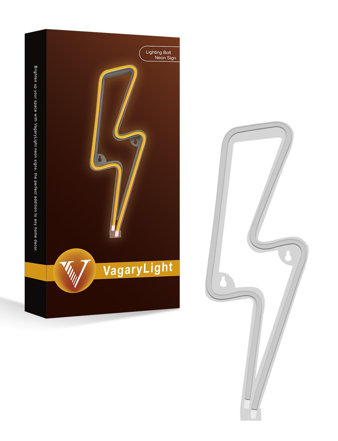 Vagarylight Neon Lightning Bolt Led Sign - Battery & Usb Powered Warm White Wall Decor