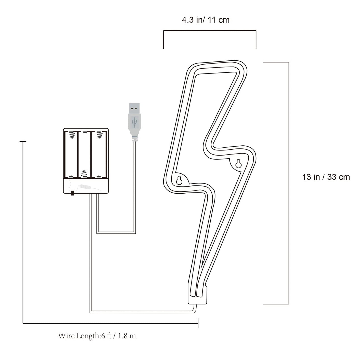 Q: What are the power options for the Neon Signs Lightning Bolt?A: The Neon Signs Lightning Bolt can be powered in two ways: it is battery operated (using 3x AA batteries, not included) or can be connected via USB to a power source like a PC, power bank, or USB wall adapter.