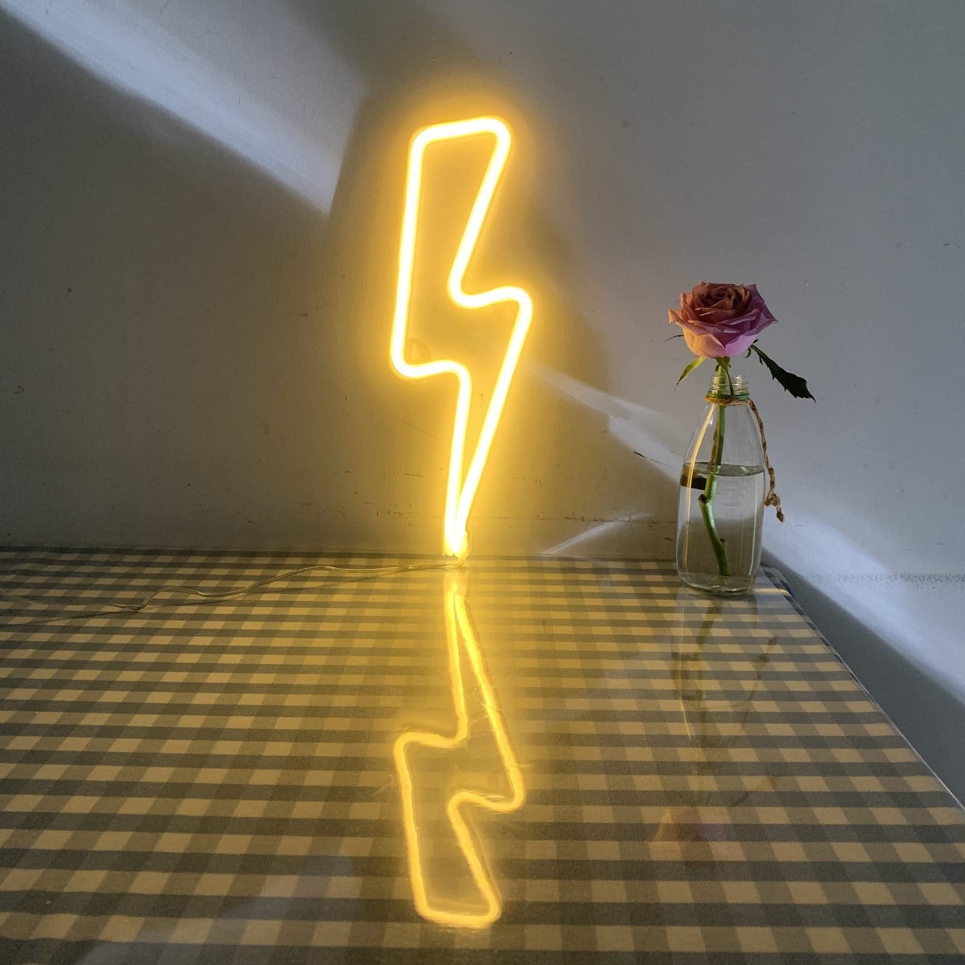 Q: Is the Neon Signs Lightning Bolt suitable for outdoor use?A: The Neon Signs Lightning Bolt is designed for indoor decoration, including use in living rooms, bedrooms, and parties. It is not recommended for outdoor use as it may not withstand outdoor conditions.