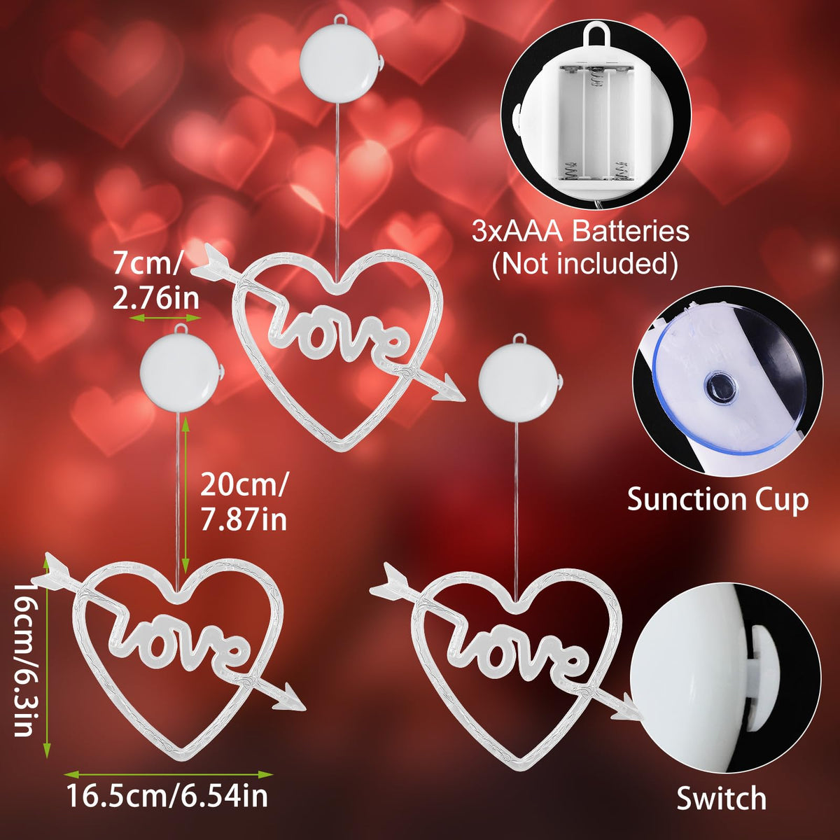 ??Valentine Day Window Lights,3PCS Valentines Decorations Heart Lights with Suction Cup,Timer,Battery Operated Indoor String Lights for Home Wedding Anniversary(Red)