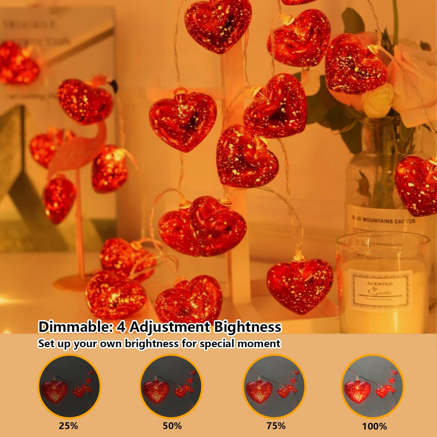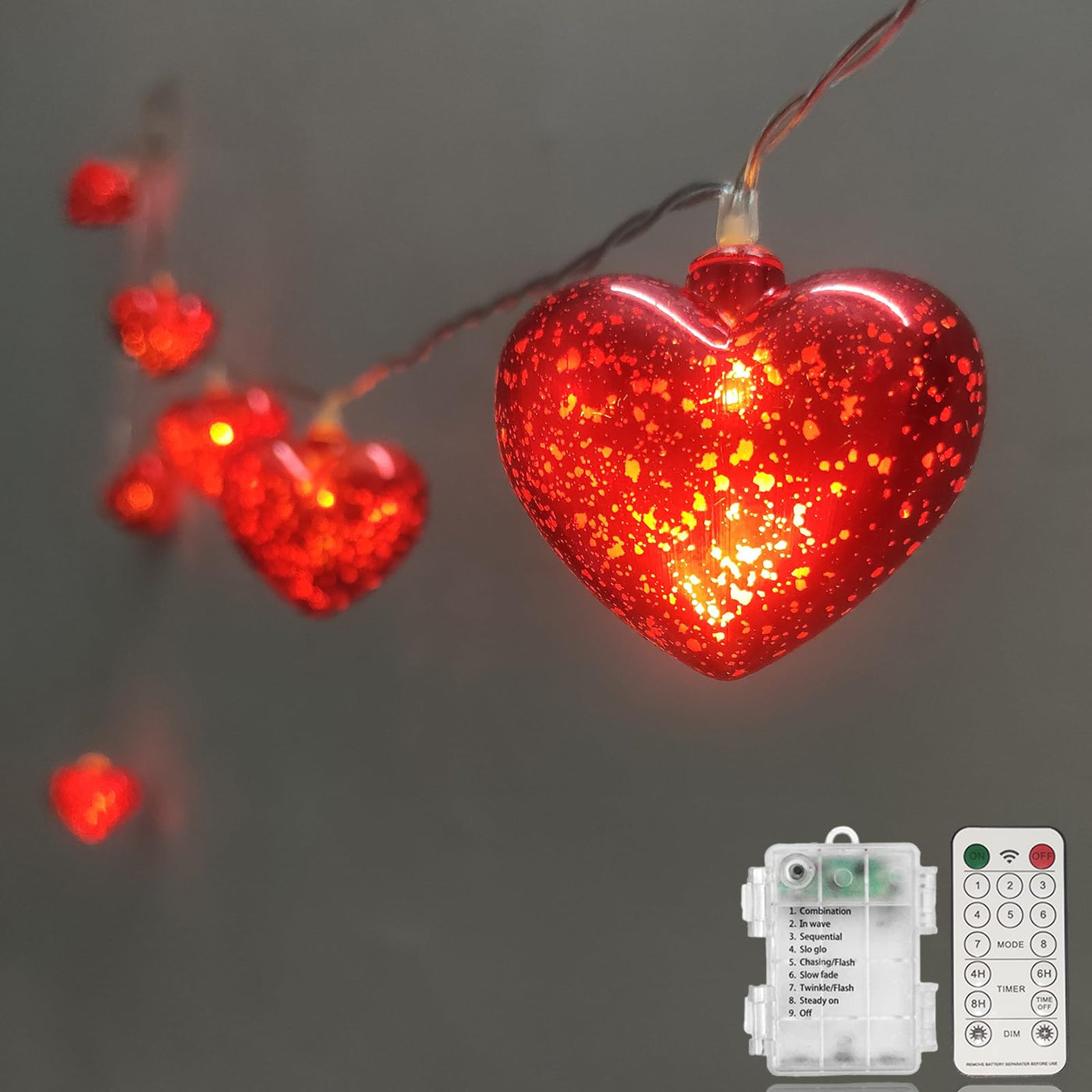 Valentine Heart Lights 6.8Ft 10 LED Valentines Day Lights with Remote Timer, Battery Powered Heart String Lights Indoor Valentin