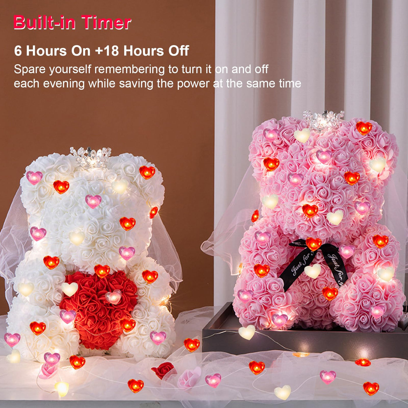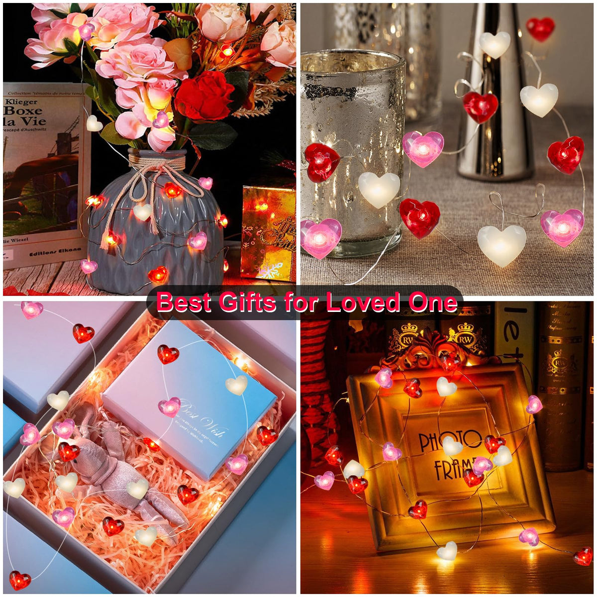 Valentines Day Heart Fairy Lights-14.4Ft 40Led Battery Powered Red Pink White Heart Twinkle String Lights With 8 Modes Timer Rem