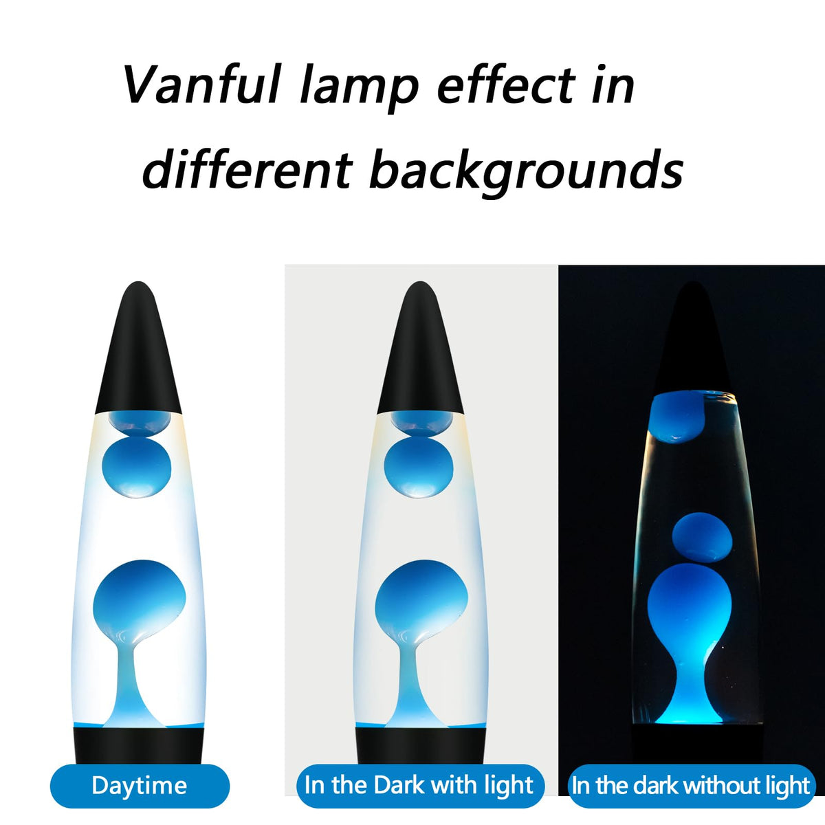 Vanful Blue 16 Inches Magma Liquid Motion Lamp with Black Base, Glitter Lamps for Adults and Kids Charged by Cord Night Light Co