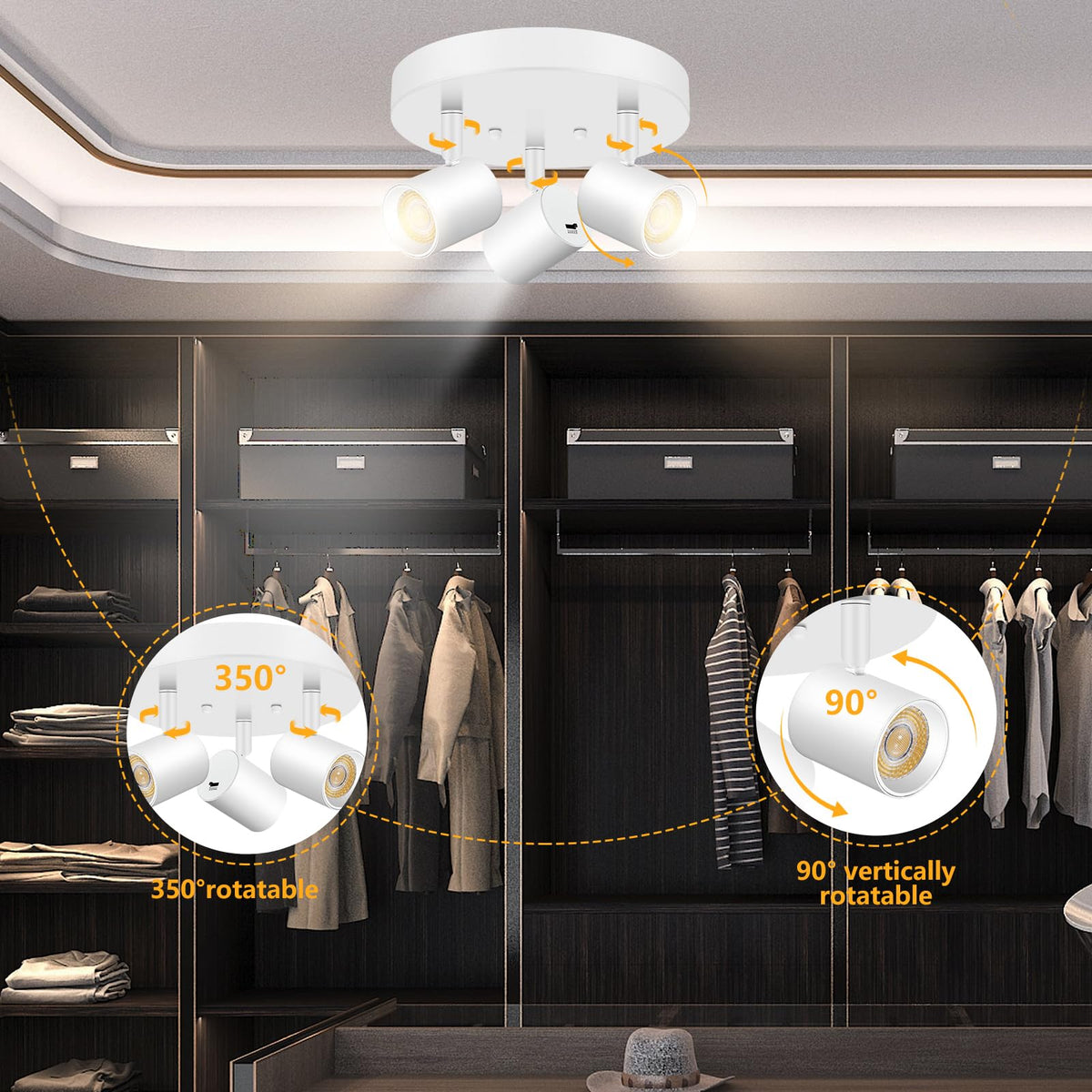 VANoopee LED Ceiling Spot Light 3 Light Adjustable Matte White Fixture Model ITLK5CCT3HW for Kitchen Hallway