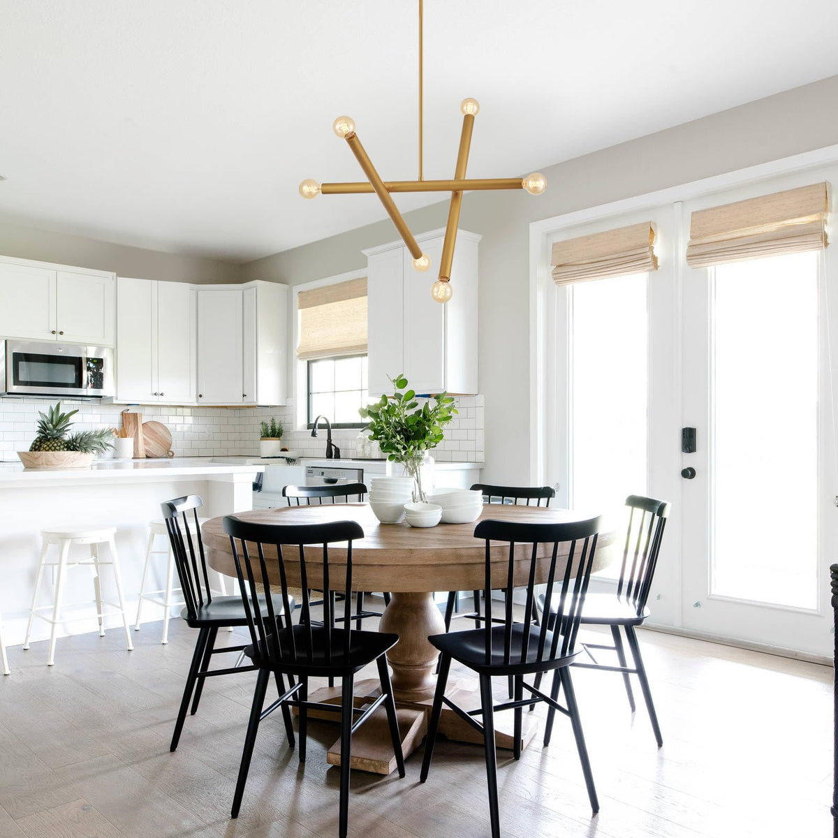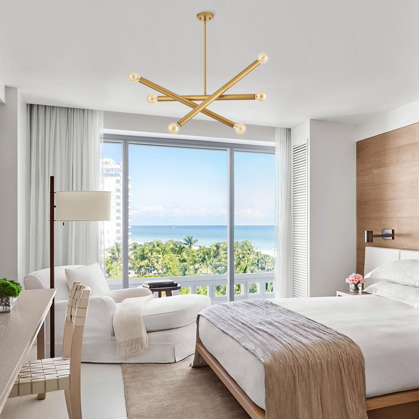 Vanzarla Modern Dining Room Chandelier, Gold Sputnik Chandeliers Bedroom, Vintage Pendant Light Kitchen, 6-Light Adjustable Hang