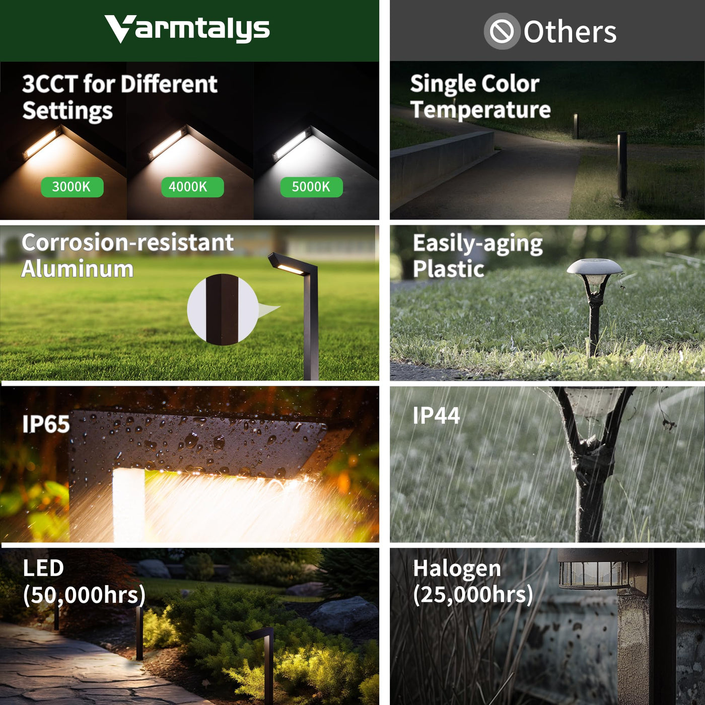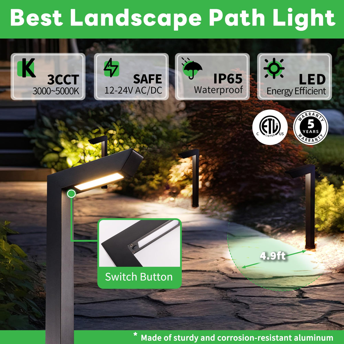 Varmtalys Outdoor Path Lights, Led Landscape Pathway Lights 3000K/4000K/5000K Selectable, 12V Low Voltage Wired, Waterproof 5W 2