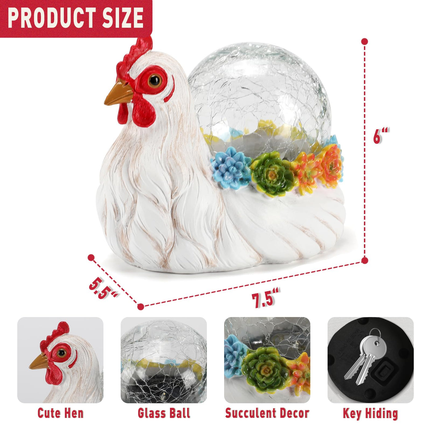 Vasesun Solar Chicken Garden Statue Lights For Outdoor Decor With Cracked Glass Led Rooster Figurine Lighting Resin Succulent He