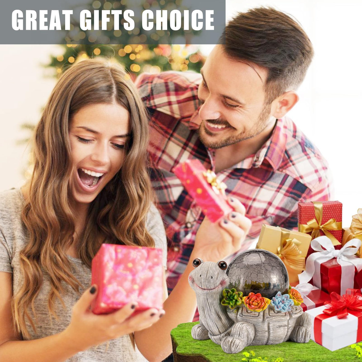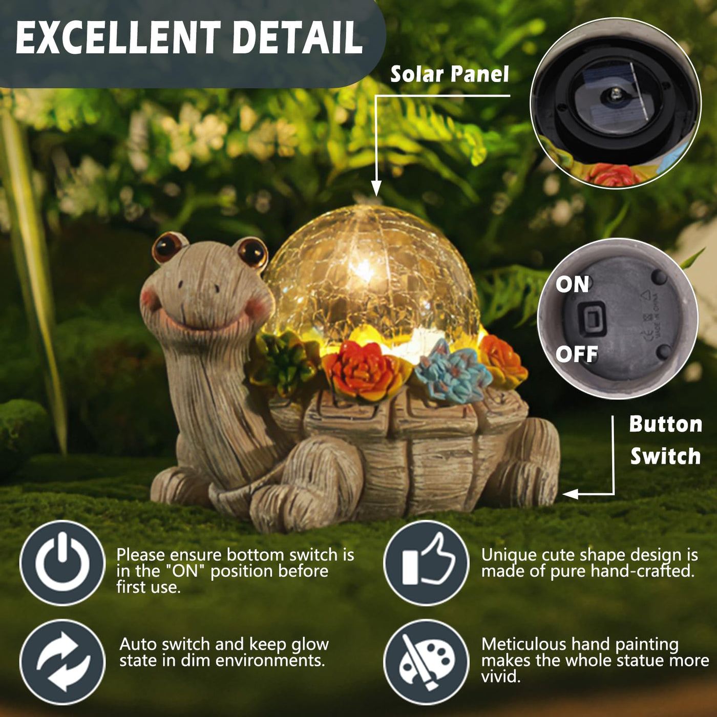 Vasesun Solar Turtle Garden Statue Lights For Outdoor Decor With Cracked Glass Led Figurine Lighting Resin Succulent Tortoise De