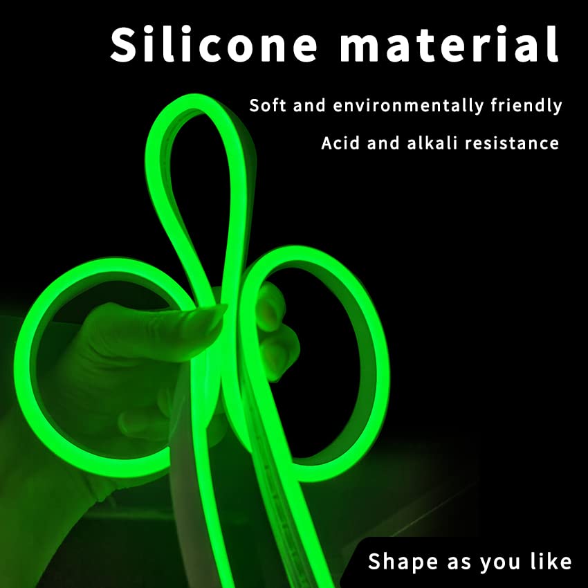 Vasten Green Led Neon Flex Tube Light, 8X16Mm, 16.4Ft Flexible Silica Gel Strip