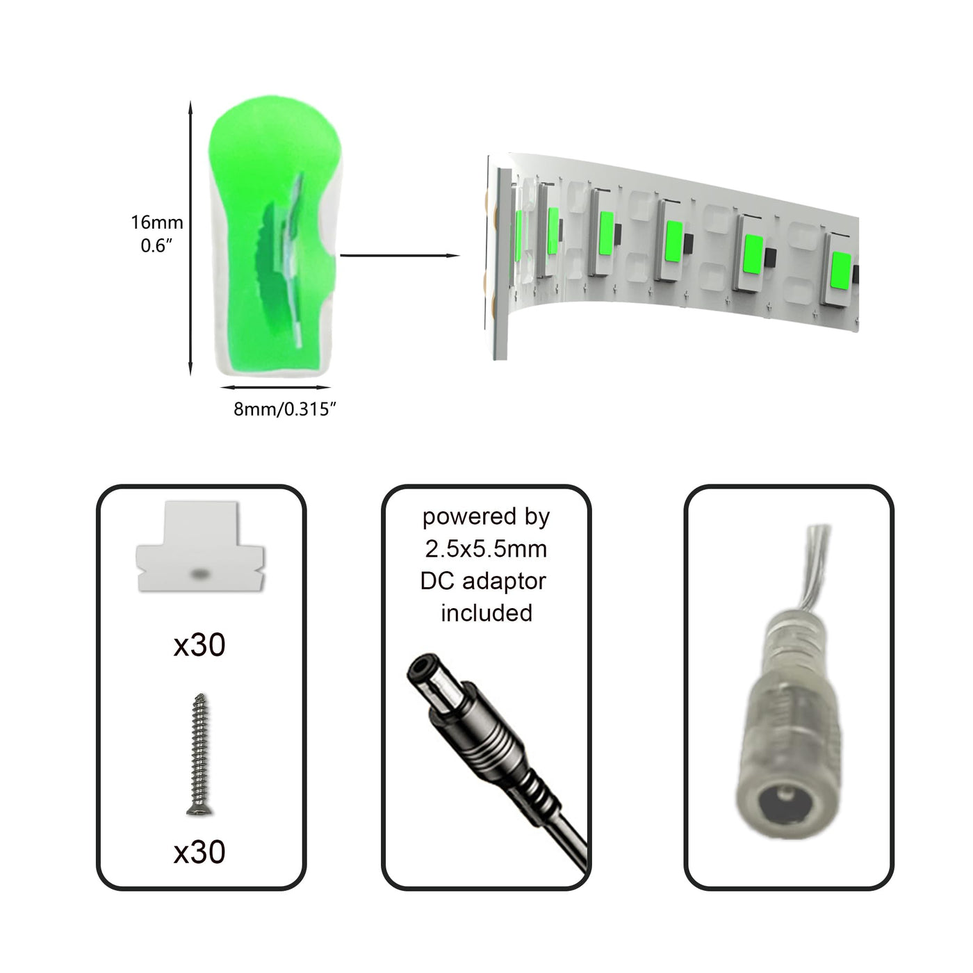 - **Easy Installation**: The product comes with a complete installation kit, including 20 transparent mounting clips and a 5A power supply. The plug-and-play transformer makes setup a breeze, while the flexible design accommodates a minimum bending diameter of 50mm.