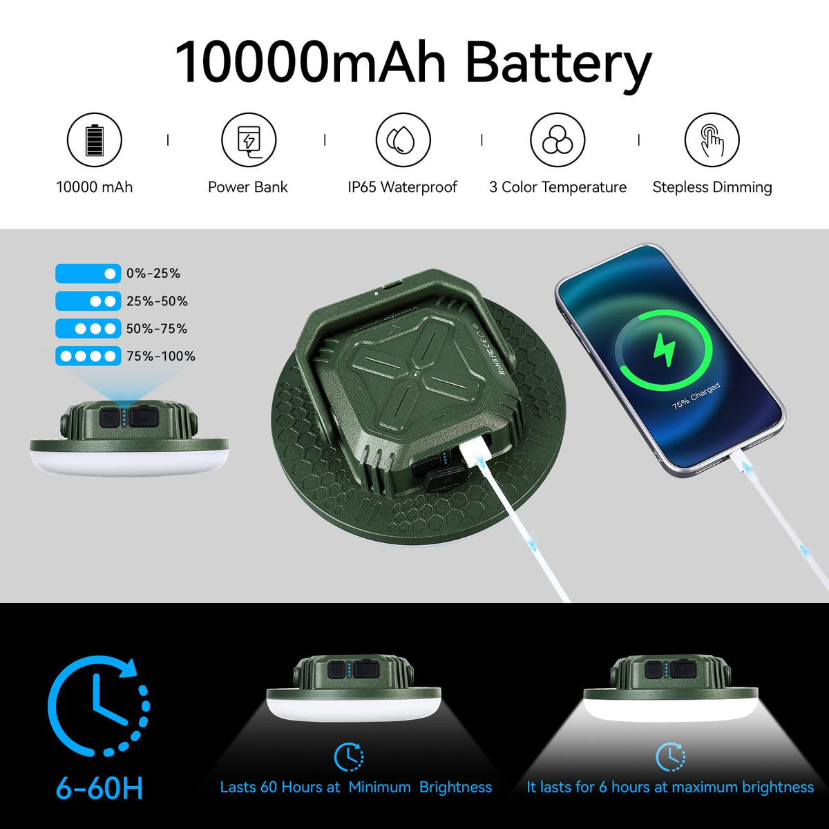 Vavofo 42W 4000Lm Led Camping Lantern Rechargeable, 10,000Mah Power Bank, 3 Lighting Modes, Ip65 Waterproof Flashlight , Portabl