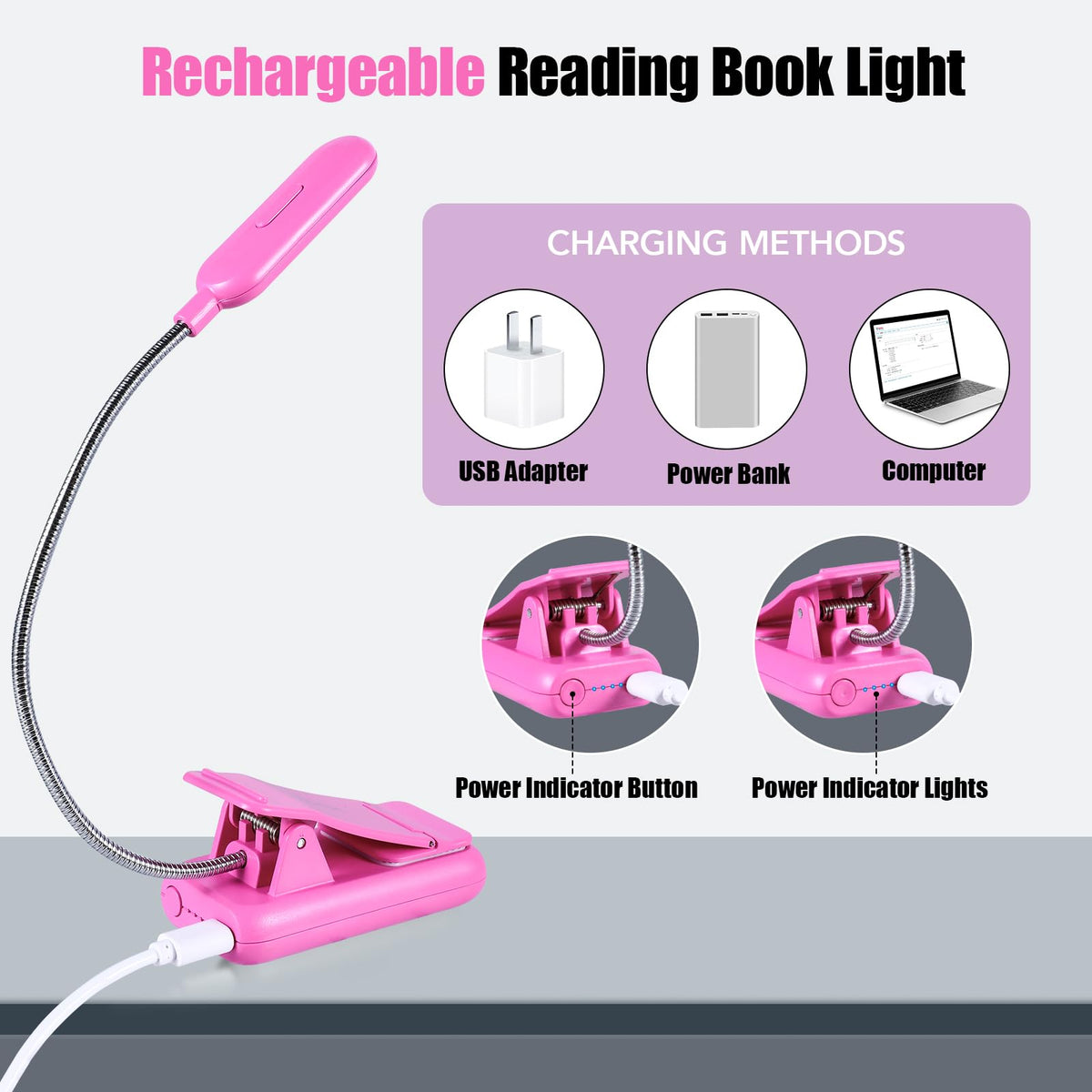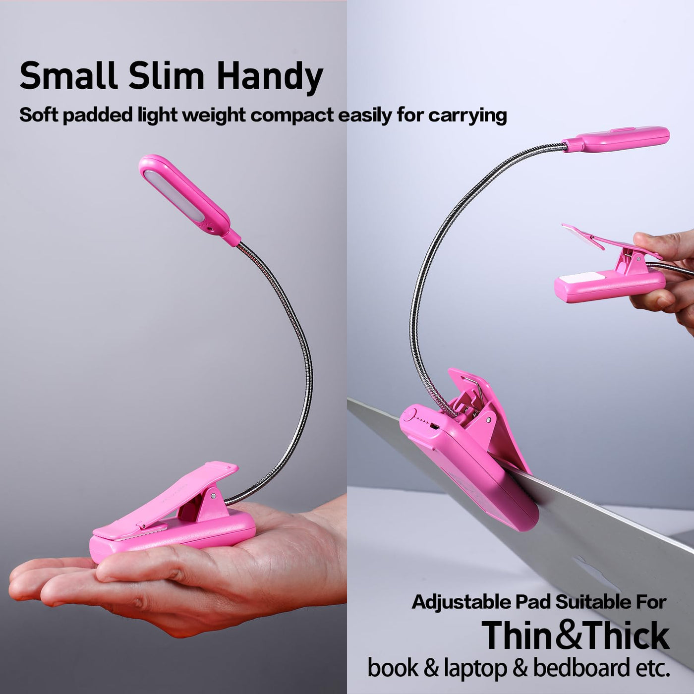 VAVOFO Rechargeable Book Light, 7 LED, 9-Level Warm Cool White, Eye Care Lamp, Rose, Model KM-6720