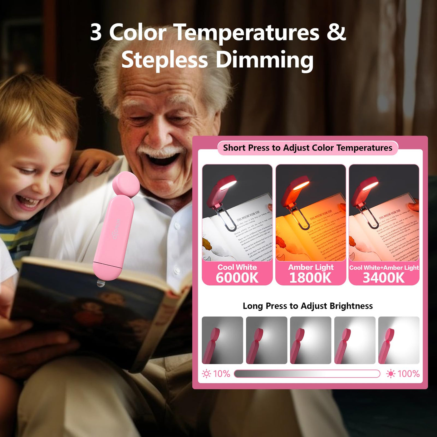Vavofo Usb Rechargeable Book Light, Blue Light Blocking, Amber Light Clip On Bookmark Shaped Reading Light, Eye Care 6 Leds Book Light For Bookworms Reading In Bed (Pink)