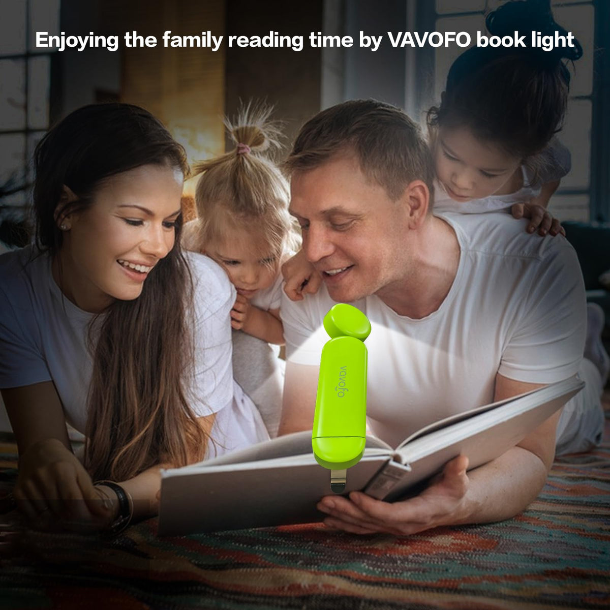 Q: What are the main features of the VAVOFO USB Rechargeable Book Light?A: The VAVOFO USB Rechargeable Book Light features 9 lighting modes with 3 color temperatures, stepless dimming, and a low battery indicator. It is designed for both children and adults, making it versatile for various reading needs. The lightweight design (only 43.4g) allows for easy portability, and it can serve multiple functions such as a torch, night light, or emergency light.