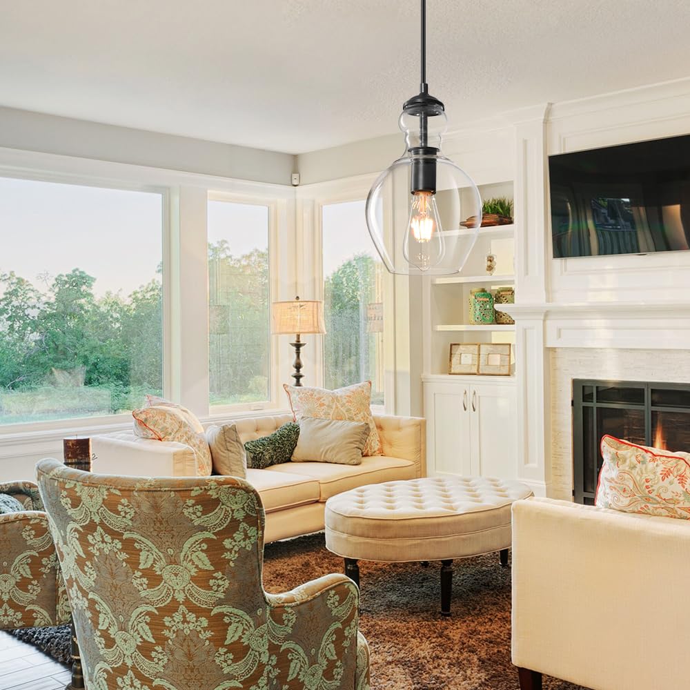 Q: What materials are used in the construction of this pendant light?A: This pendant light features high-quality materials, including a sturdy clear glass lampshade that is both beautiful and durable, ensuring long-lasting use and a unique design to enhance your home decor.