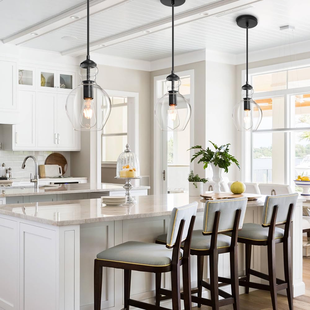 Vaziden Modern Glass Pendant Lighting For Kitchen Island Kitchen Sink, Farmhouse Black Pendant Light Fixtures 7 Inch 1 Pack, Adj