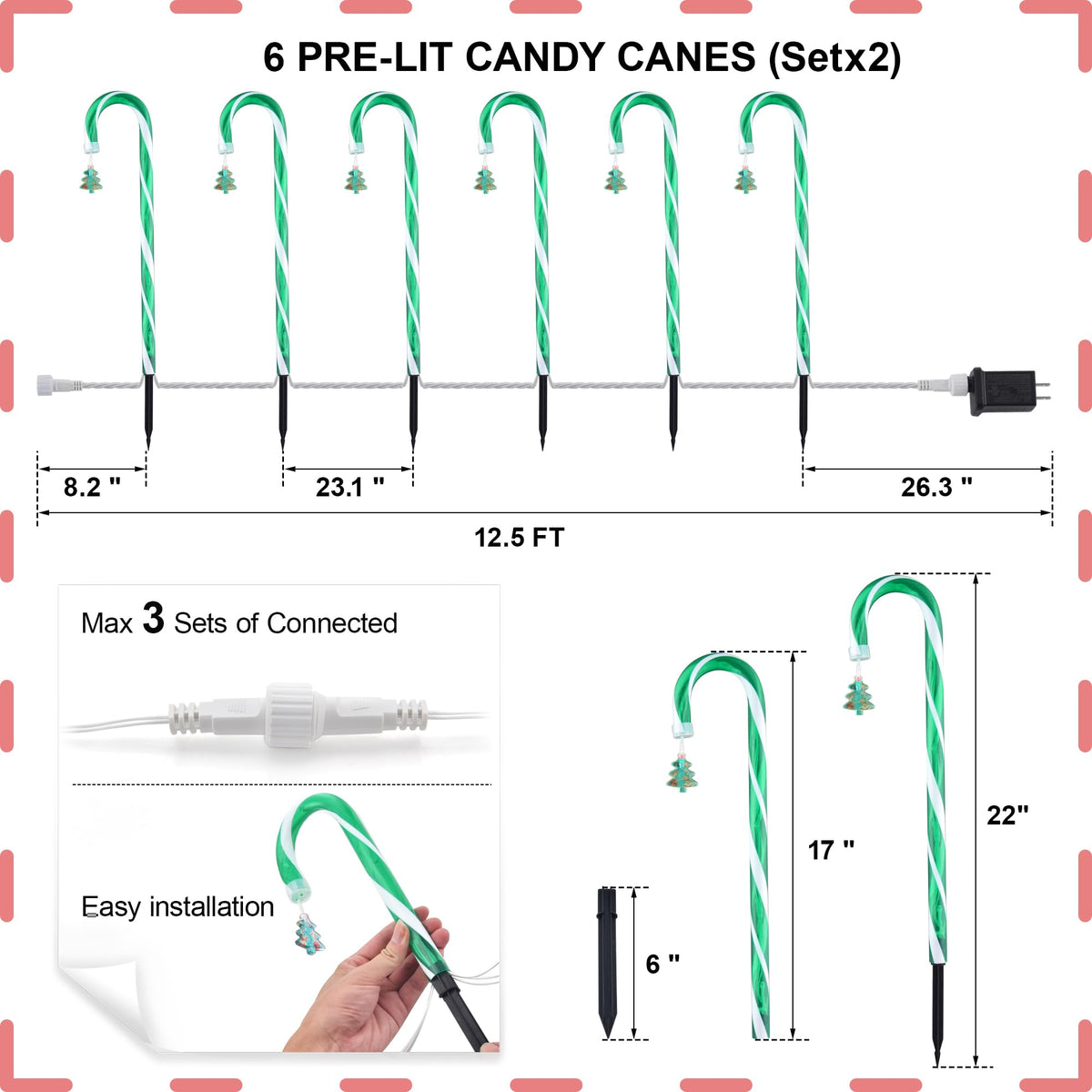 Q: Can I connect multiple sets of candy cane lights together?A: Absolutely! You can connect up to 3 sets of VCOKEN Candy Cane Lights, allowing you to create a longer display of up to 36 feet, ideal for larger pathways or festive decorations.