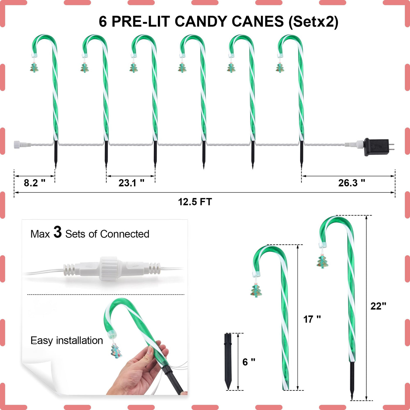 Vcoken 22'' Christmas Candy Cane Lights Outdoor Pathway - Set Of 12 Led Light Up Candy Canes Outdoor Christmas Decor, Connectabl