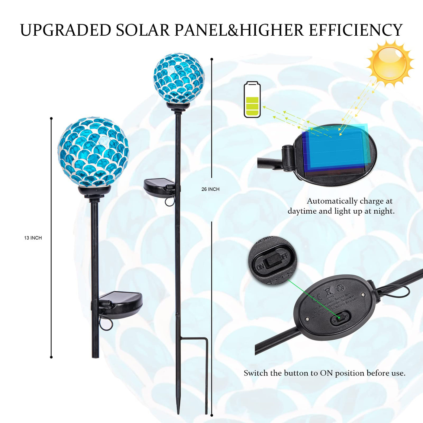 Q: What makes these solar pathway lights unique?A: These solar pathway lights feature a stunning mosaic globe design that not only illuminates your garden but also adds a romantic ambiance, making it a standout decorative element in your outdoor space.