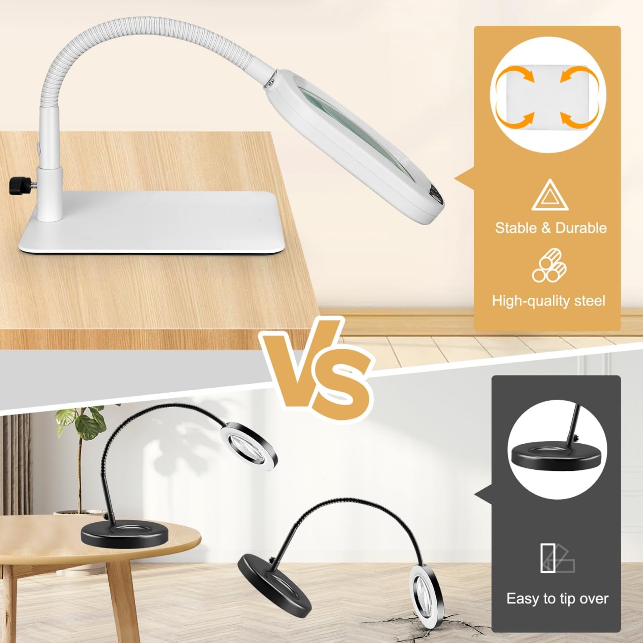 Q: Is the base of the magnifying glass stable enough for hands-free use?A: Absolutely! The upgraded rectangular metal base provides enhanced stability, making it perfect for hands-free use. It can also double as a small workbench, adding versatility for various DIY projects.