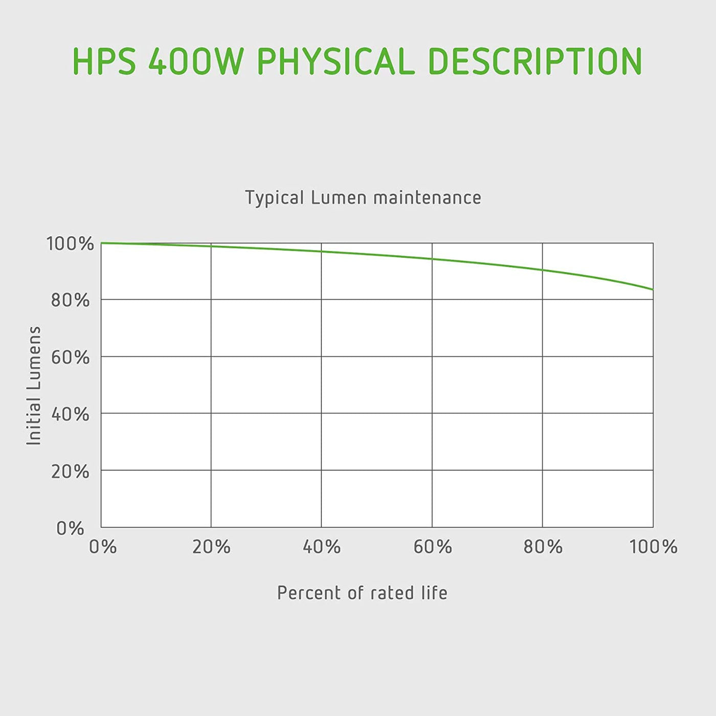 Q: How long does the Vegelumax 400W HPS bulb last?A: The Vegelumax 400W HPS bulb has an exceptional lifetime of over 20,000 hours, providing a long-lasting and efficient lighting solution for growers.