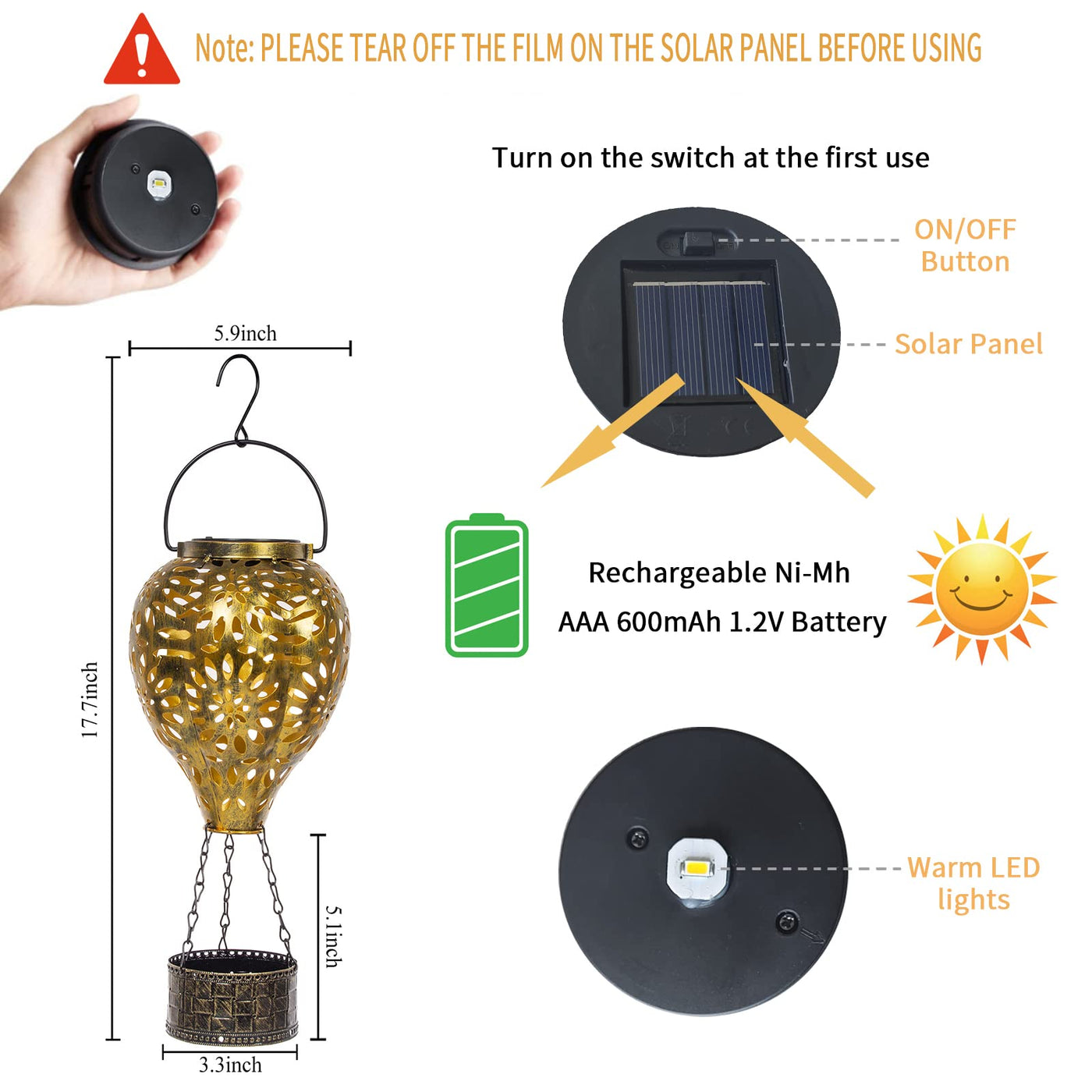 Venniy Hot Air Balloon Solar Lantern, Hanging Solar Lantern Outdoor Waterproof Decorative Metal Led Lantern Solar Lights For Trees Patio Garden Yard Porch Decor, Gold