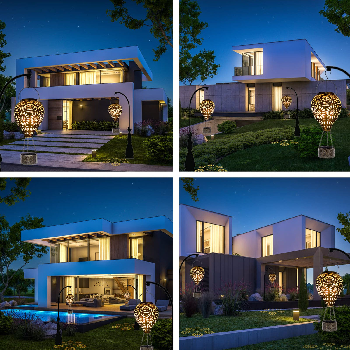 Q: What kind of ambiance does the Venniy Solar Lantern create?A: The hollow-out flower and sunface base design of the lantern casts beautiful patterns on walls or decks, adding a warm and romantic ambiance to your garden or patio.